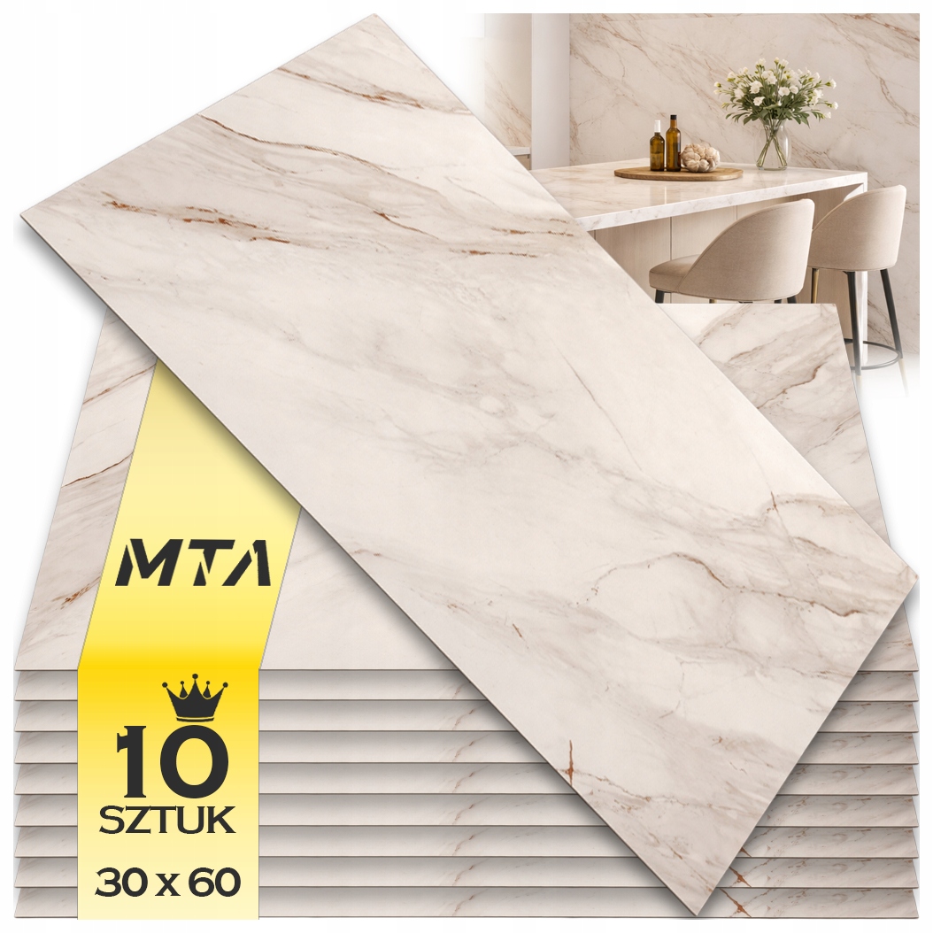 10X PANEL BIAŁY MARMUR PCV ŚCIENNE SAMOPRZYLEPNE 30CMX60CM TAPETA POŁYSK