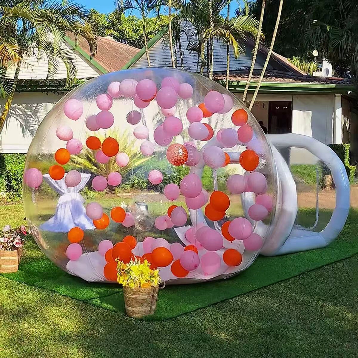 Przezroczyste ścianki bańki sprawiają, że można obserwować świat z wnętrza domku – bez wychodzenia na zewnątrz! To połączenie zabawy, bezpieczeństwa i estetyki w jednej atrakcji.