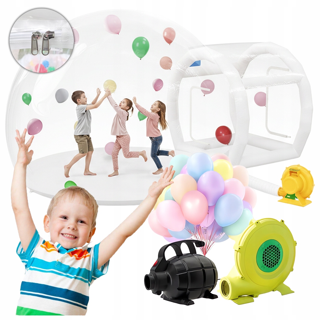 ➡️ Bubble House ➡️ Dmuchawa elektryczna 370W ➡️ Pompka elektryczna do przedsionka ➡️ Końcówka do pompowania balonów ➡️ 200 balonów ➡️ Pełna dokumentacja