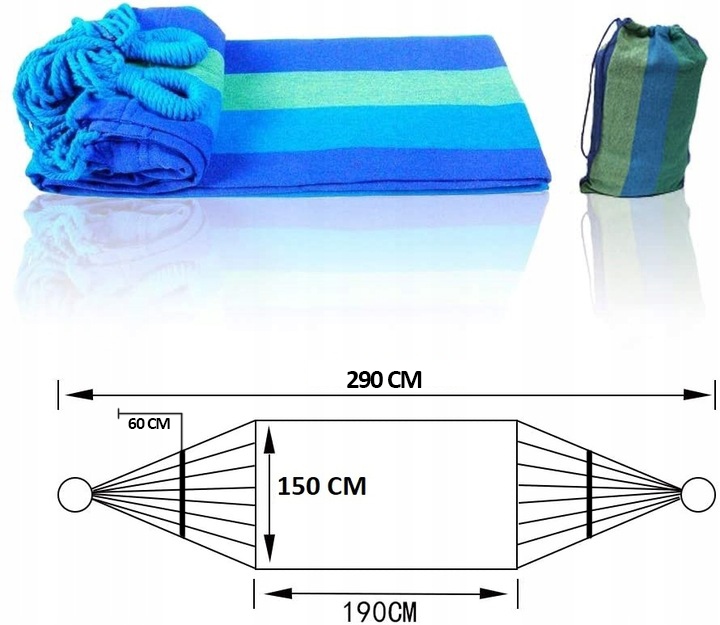 DUŻY HAMAK 2-OSOBOWY MOCNY XXXL 290×150 TORBA + PODUSZKA JAKOŚĆ PAŁĄK 60 CM
