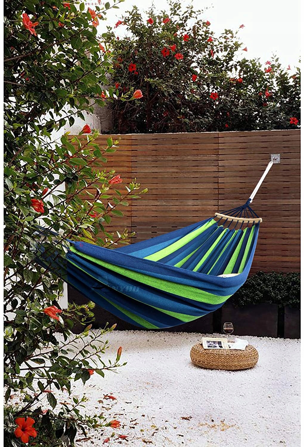 DUŻY HAMAK 2-OS MOCNY Z DREWNIANYM PAŁĄKIEM WZMACNIAJĄCYM 260x150 TORBA+ PODUSZKA