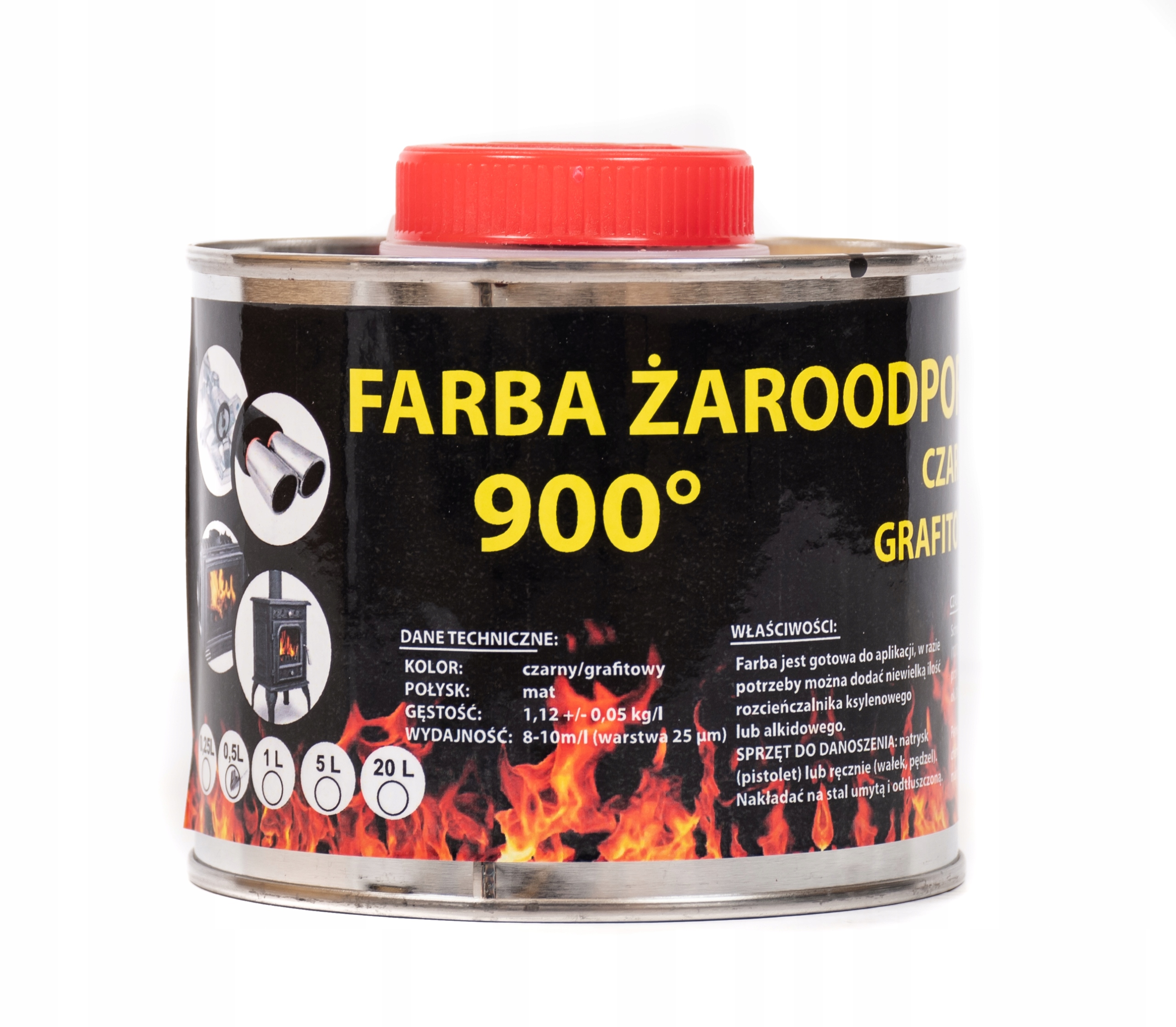 FARBA ŻAROODPORNA CZARNA DO 900 °C, 0,5L