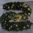 ✅ Dekoracyjną girlandę świąteczną z elementami takimi jak szyszki i jarzębina.