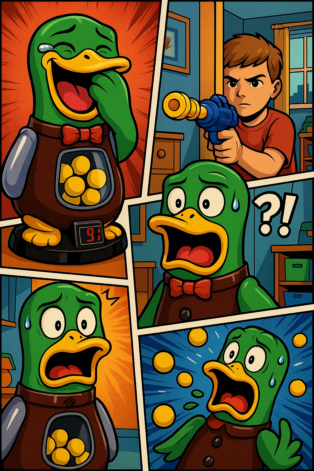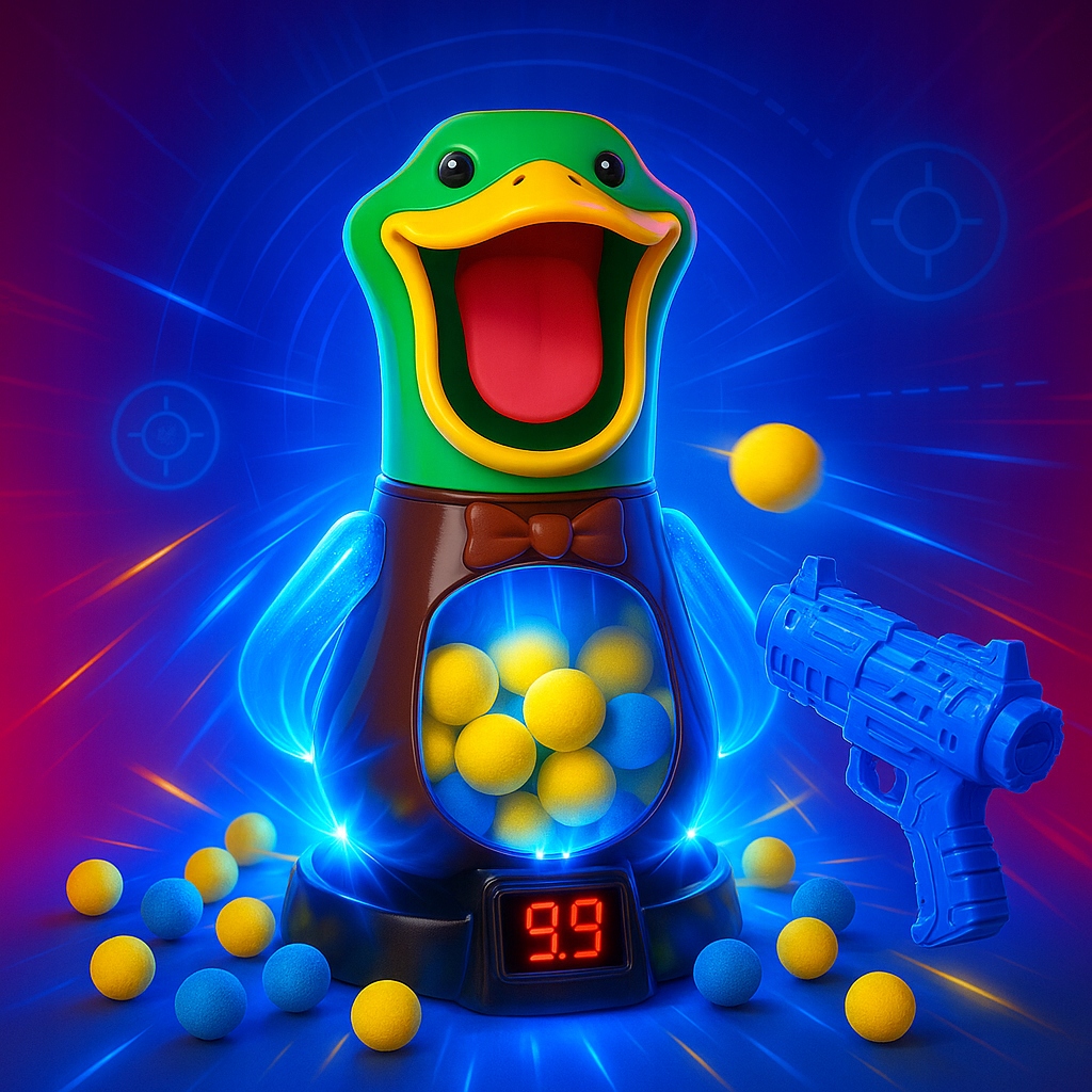GŁODNA KACZKA XXL STRZELANIE DO CELU UCIEKA LED 2xPISTOLET PREZENT URODZINY