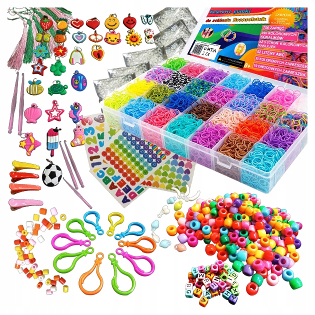 GUMKI DO ROBIENIA BRANSOLETEK 15500 elem XXXL DUŻY ZESTAW KREATYWNY KOLORY