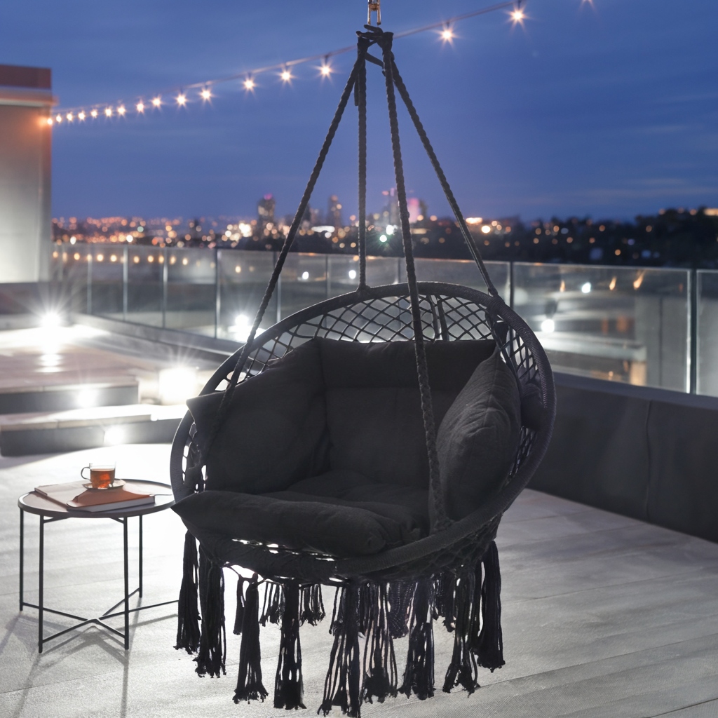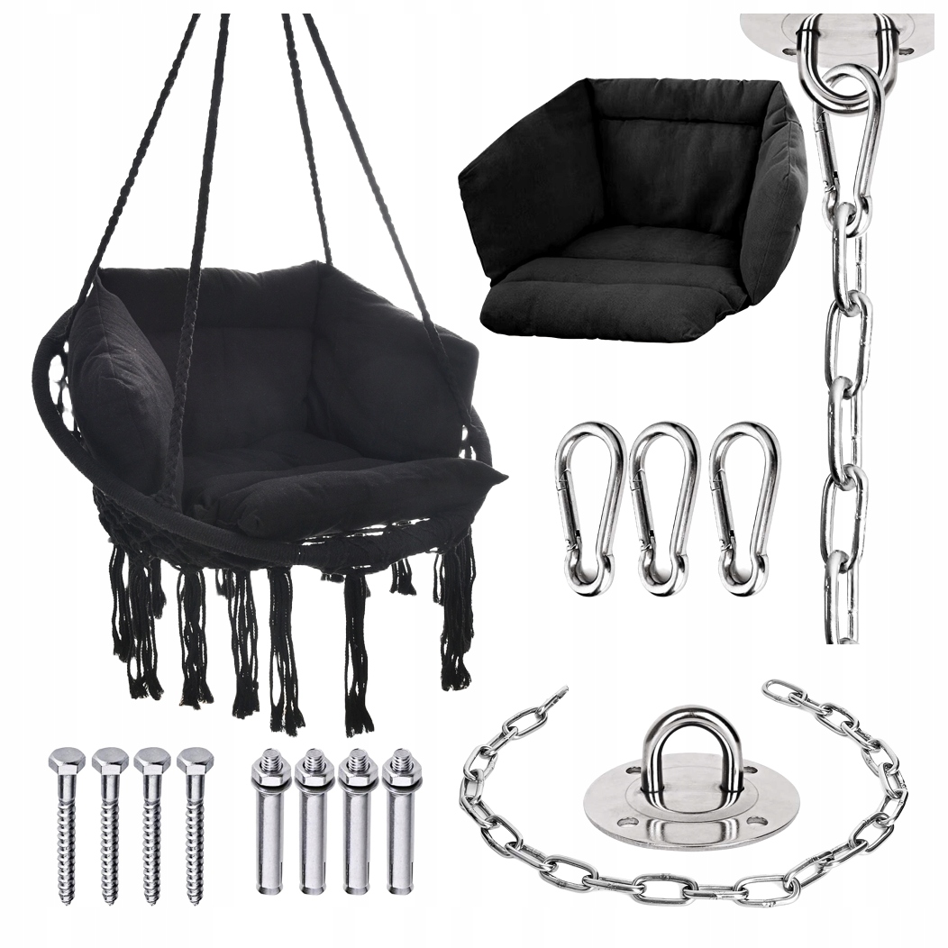 FOTEL WISZĄCY Z PODUSZKĄ ZESTAW HUŚTAWKA OGRODOWA + MOCOWANIE BOHO 120CM HQ