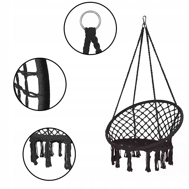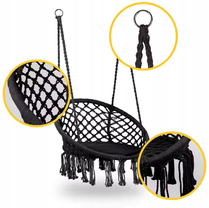 • Nasza huśtawka została skonstruowana z myślą o Tobie, wygodne siedzenie, stabilny stelaż wykonany z żelaza, który jest pokryty sznurem i mocne liny do podwieszenia fotela - wszystko to jest gwarancją relaksu! Przetestuj już dziś!
