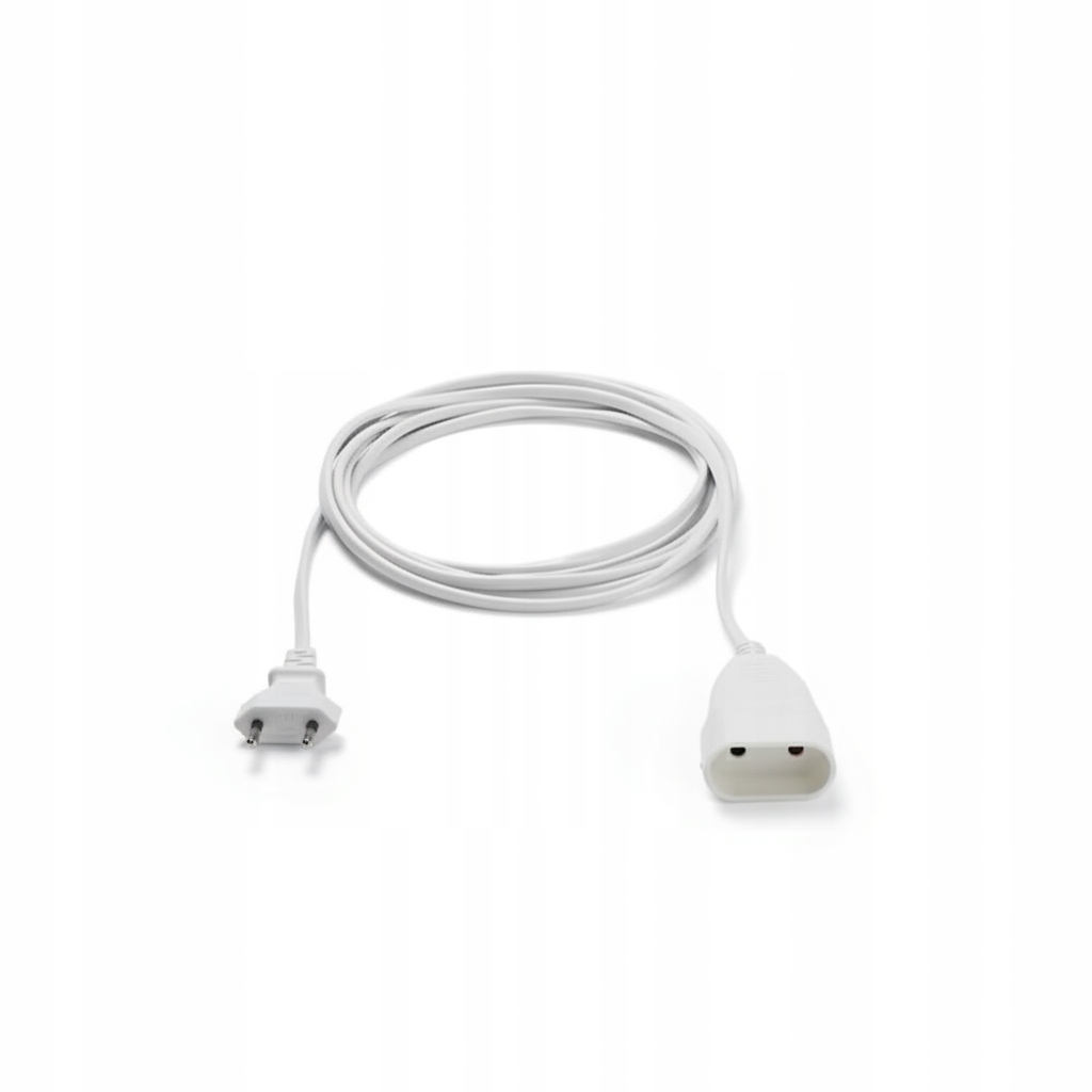 ➡️ Długość kabla: 2 metry ➡️ Typ gniazda: jednokrotne, bez uziemienia ➡️ Kolor: biały ➡️ Konstrukcja wtyczki: płaska