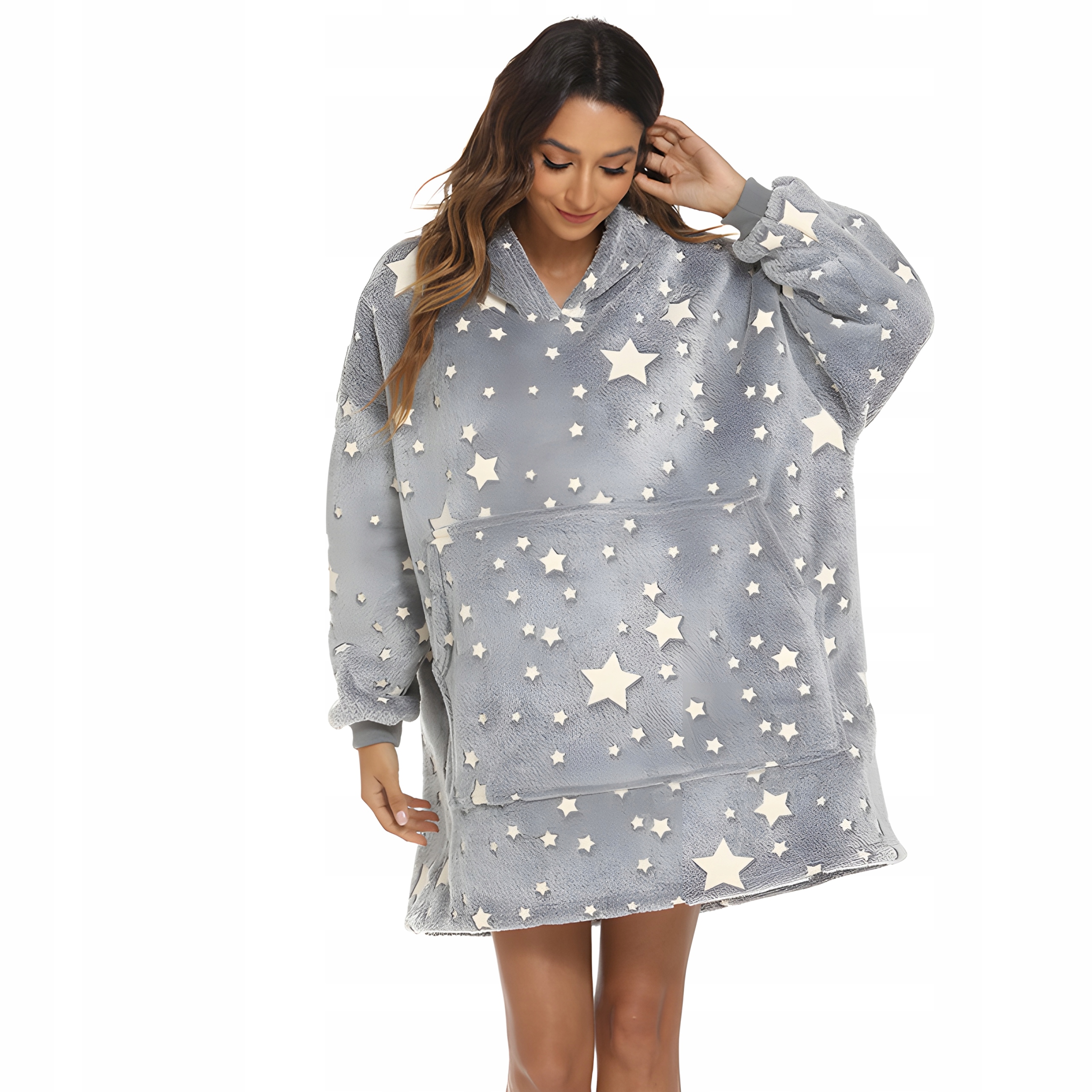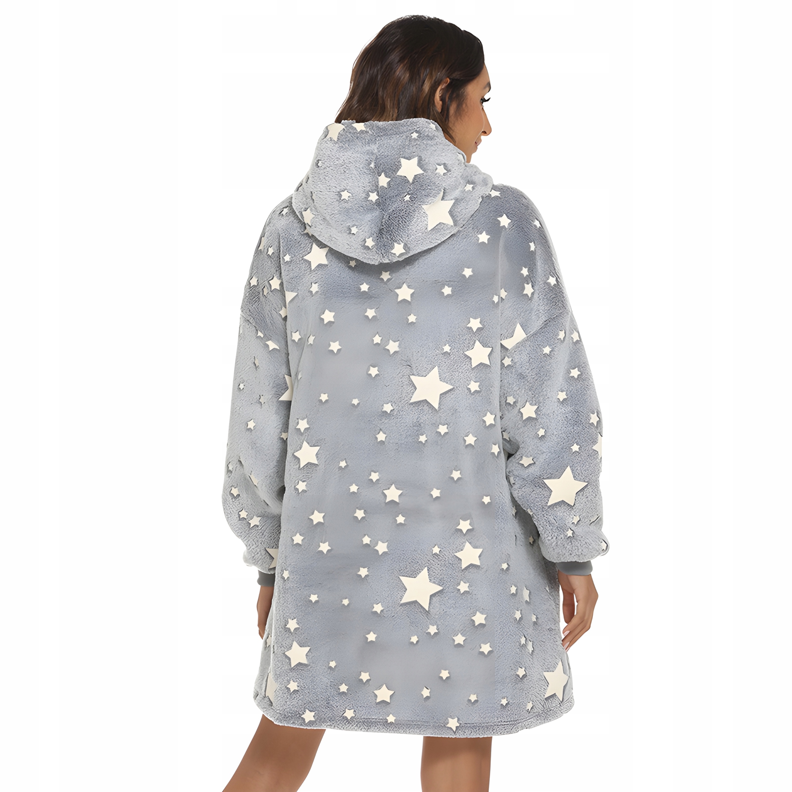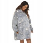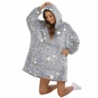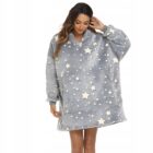 KOC BLUZA Oversize Ciepła Gruba KOCOBLUZA 2w1 XXL gwiazdki Futrzak kaptur