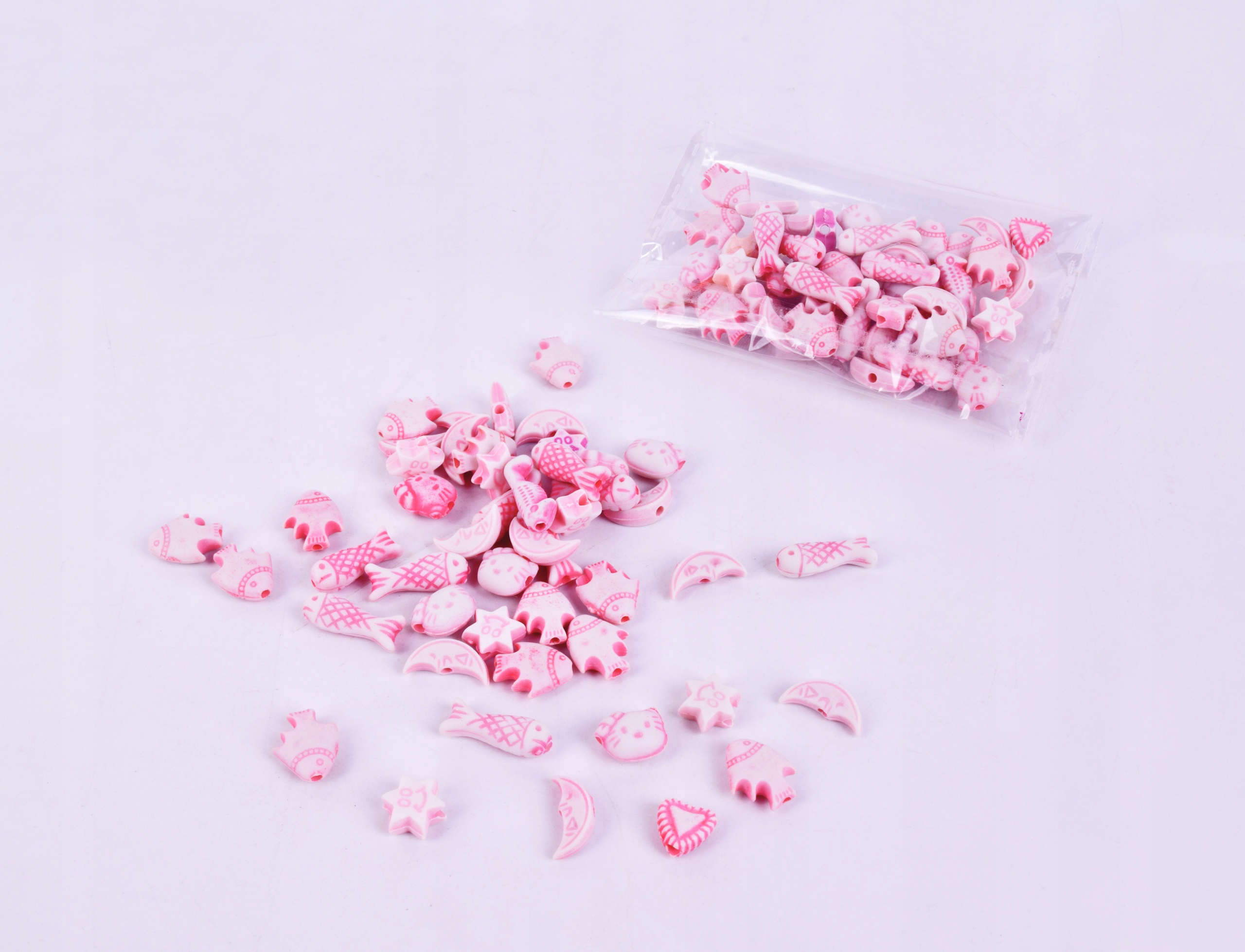 Koraliki Akrylowe Pastelowe Mix Wzorów 60szt Róż