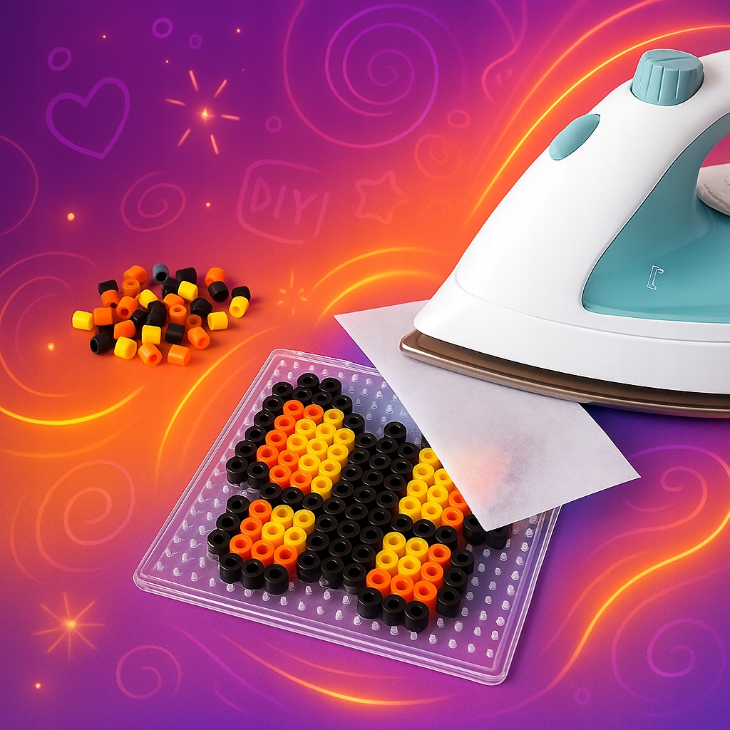 1. Ułóż koraliki na wybranej podkładce, tworząc wybrany wzór lub projekt. 2. Gdy twój wzór jest kompletny, przykryj go delikatnie papierem do pieczenia. 3. Delikatnie przyprasuj wzór przez kilka sekund ciepłym żelazkiem, aż do momentu, kiedy koraliki się stopią i połączą w jedną spójną całość. 4. Po zakończeniu prasowania, odłóż utworzoną kompozycję na około 10 minut, aby pozostała prasowanka całkowicie ostygła i utwardziła się.