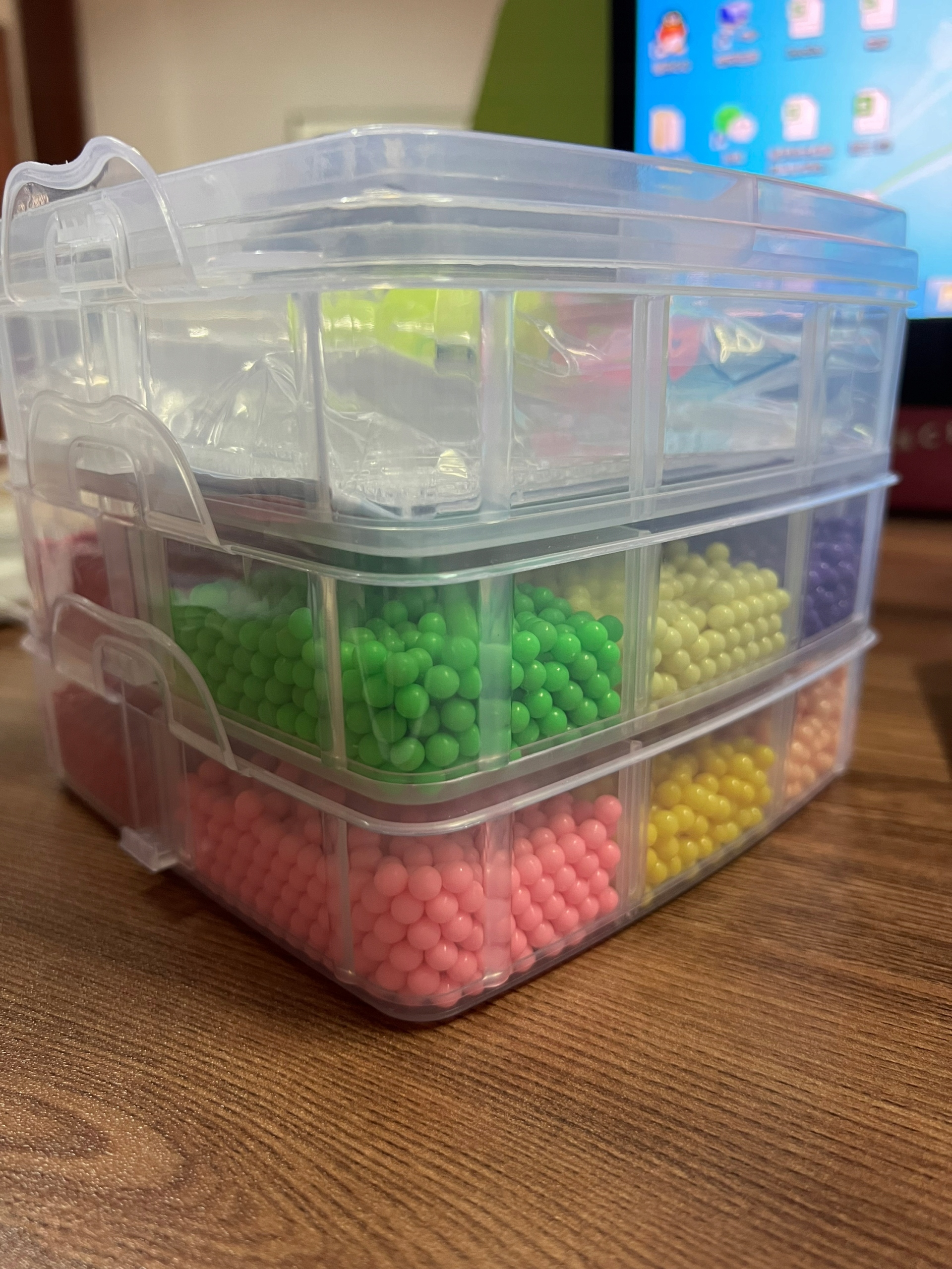 ➡️ Wymiary pudełka: około 18 x 18 x 18 cm Pudełko jest zamykane na specjalne klipsy. Średnica koralika: 5 mm