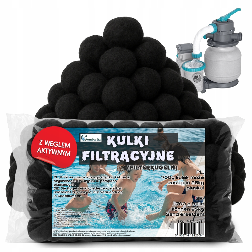 ✅Wysokiej jakości kulki filtracyjne MTA to nowoczesna alternatywa dla piasku kwarcowego, zapewniająca wysoką skuteczność oczyszczania wody. Dzięki zawartości węgla aktywnego, produkt wykazuje działanie biobójcze, wpływając na czystość i higienę wody basenowej. Jedno opakowanie 700 g odpowiada aż 25 kg tradycyjnego piasku kwarcowego.