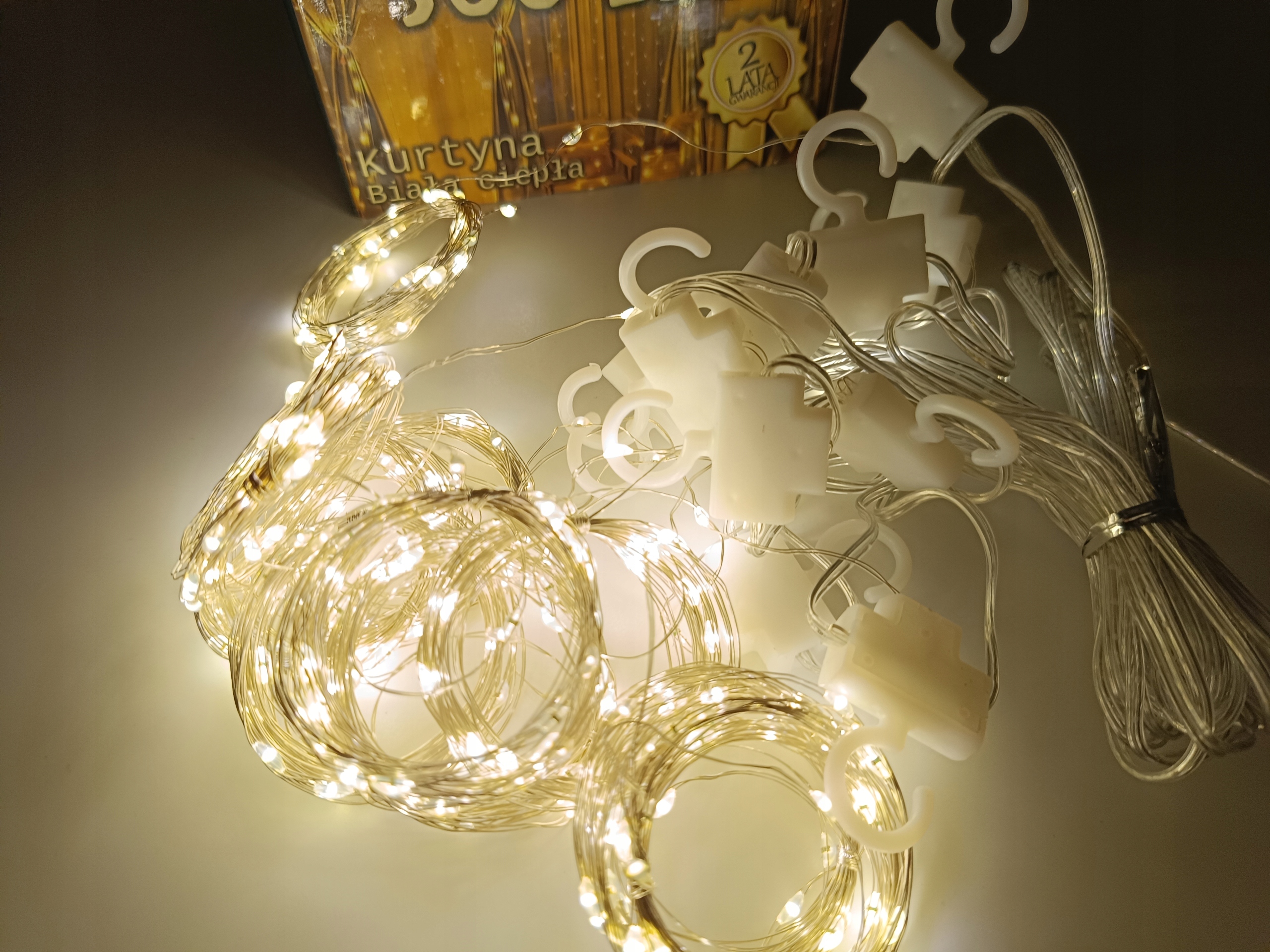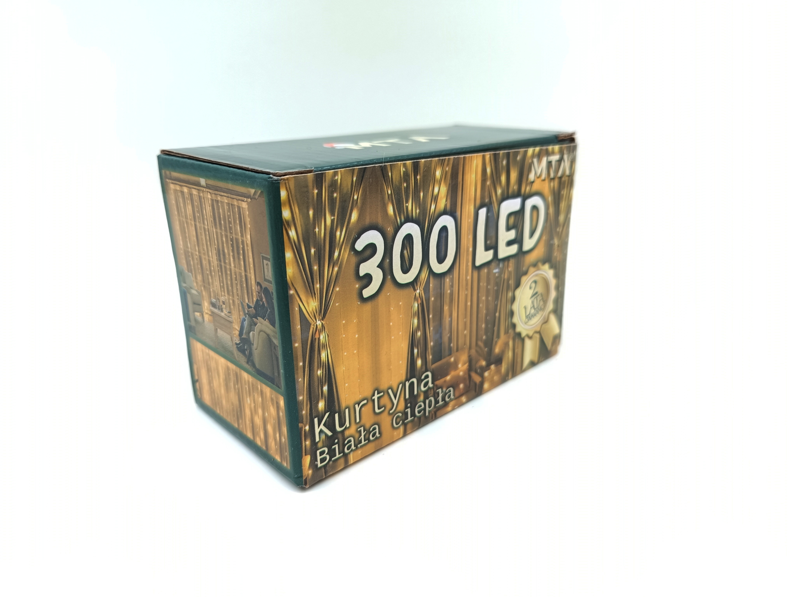 KURTYNA ŚWIETLNA 300 LED CIEPŁE 3x3 USB ŚWIĄTECZNE CHOINKOWE GIRLANDA PILOT