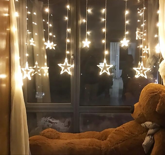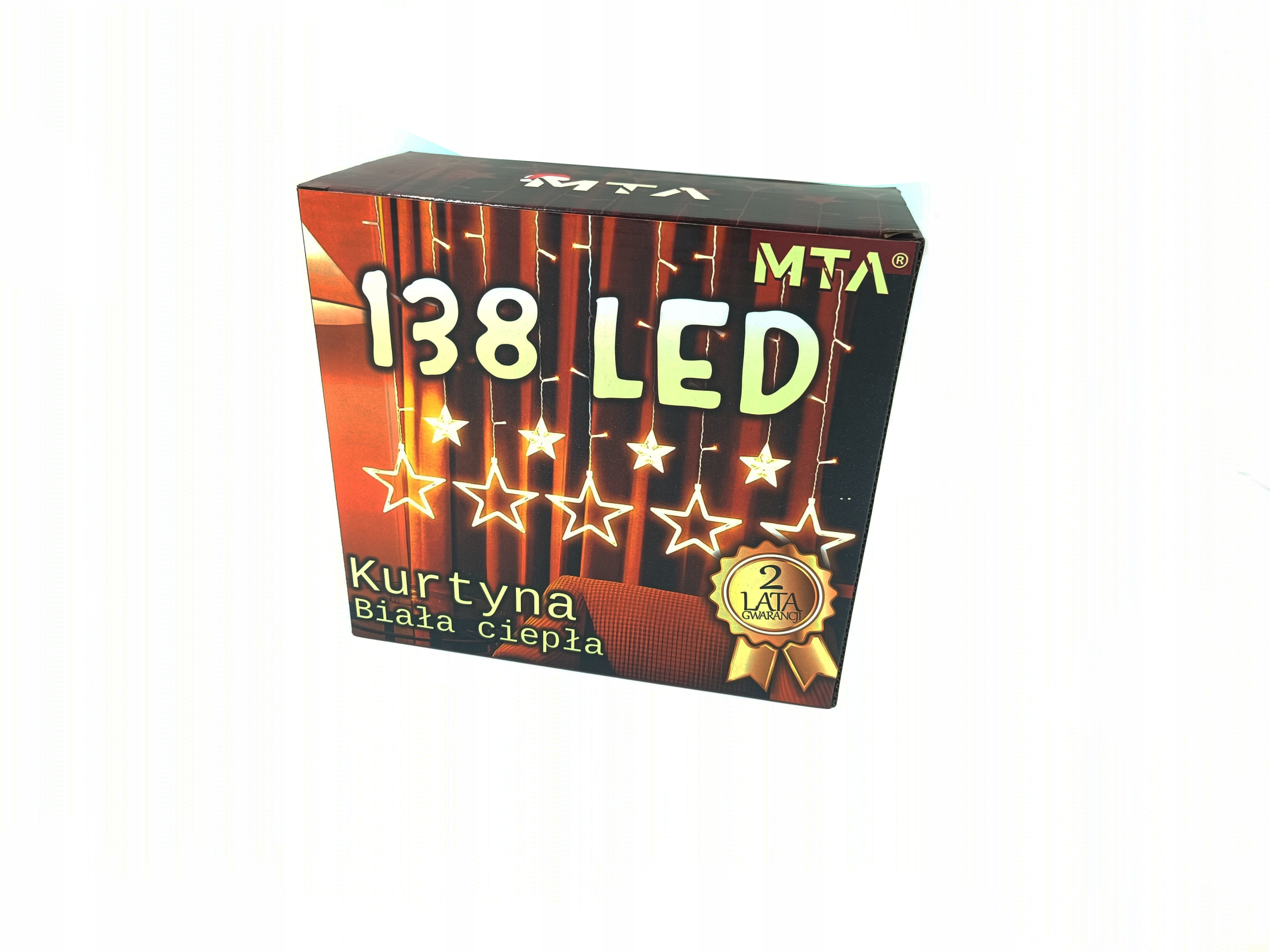KURTYNA ŚWIETLNA LED LAMPKI GWIAZDKI CIEPŁE BIAŁE CHOINKOWE GIRLANDA OKNO