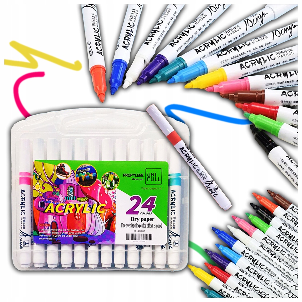 - ✔️Komplet 24 akrylowych markerów