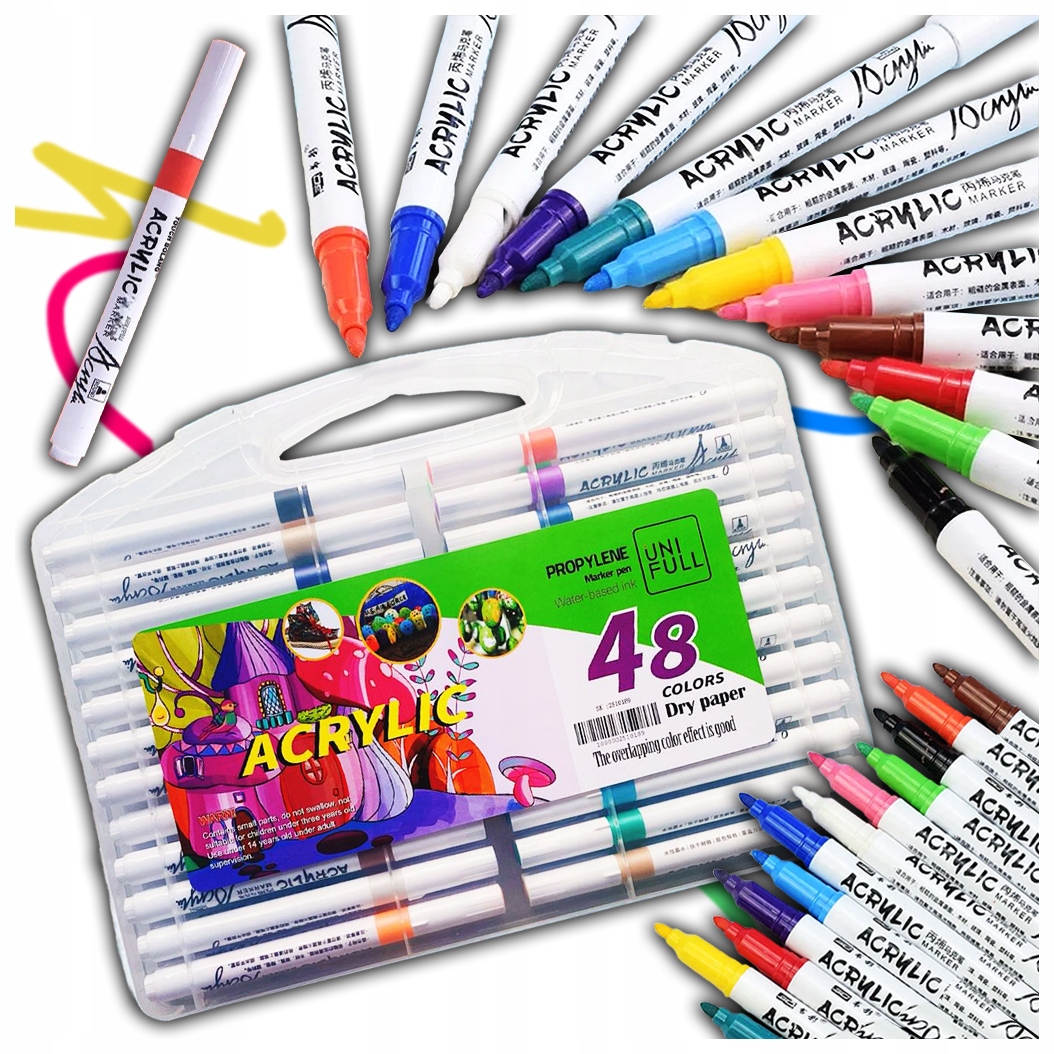 MARKERY AKRYLOWE PISAKI do KAMIENIA 0,7mm Cienkie Flamastry Mazaki 48 sztuk