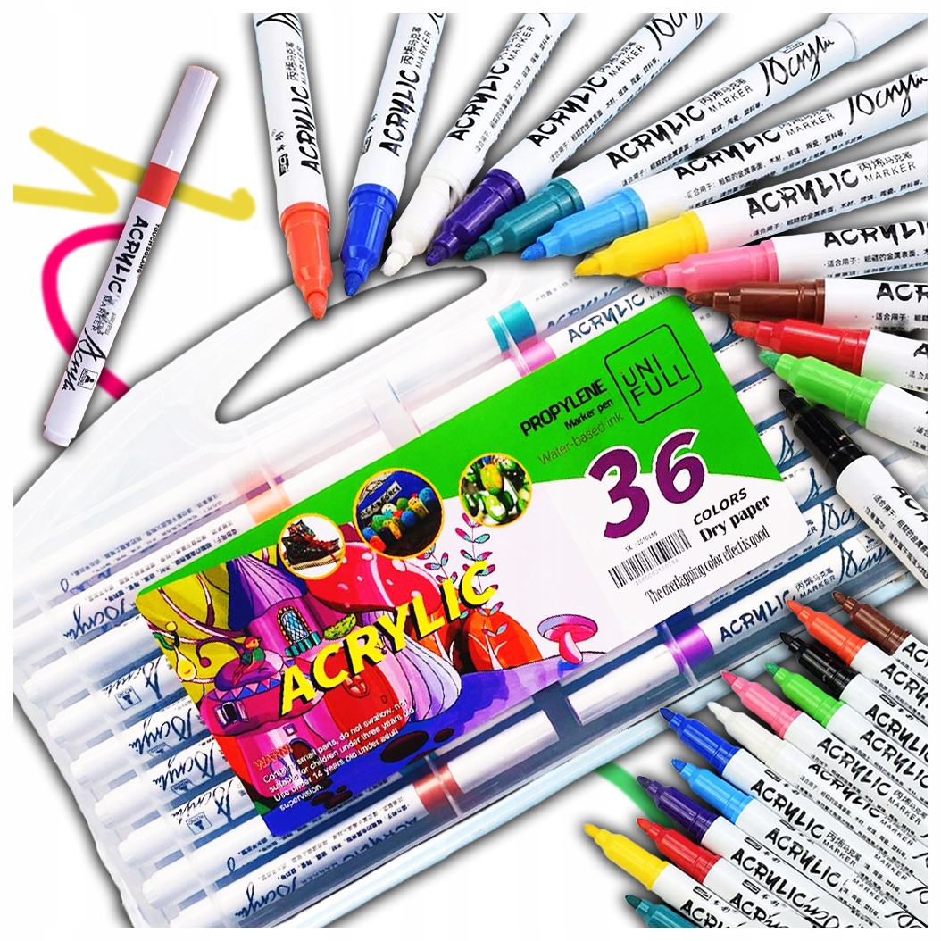 MARKERY AKRYLOWE PISAKI FLAMASTRY DO UBRAŃ KAMIENI 36 szt. PREZENT URODZINY