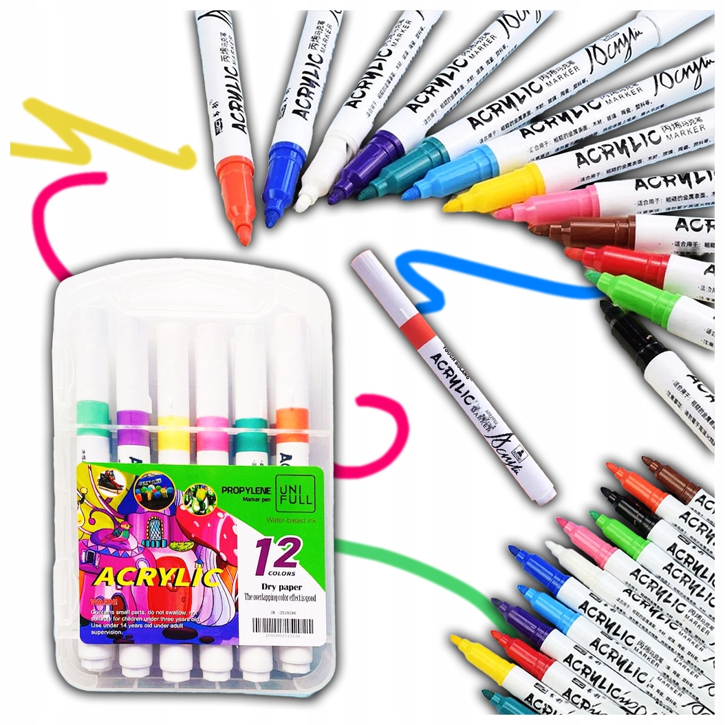 MARKERY PISAKI AKRYLOWE FLAMASTRY DO MALOWANIA UBRAŃ KAMIENI 0,7mm 12 sztuk