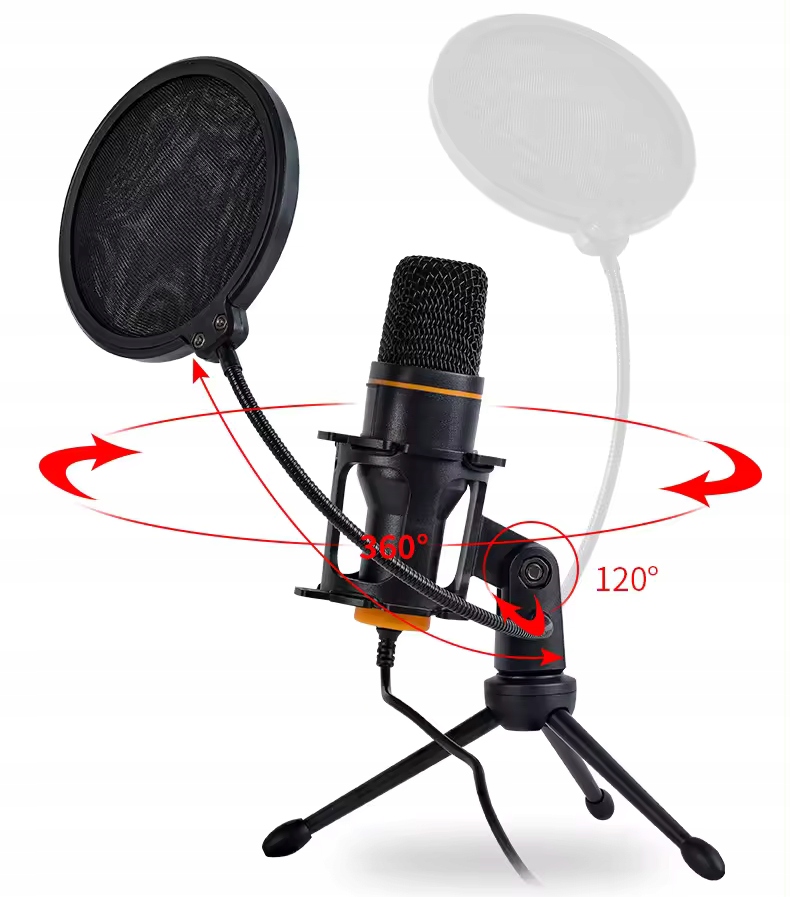 MIKROFON KOMPUTEROWY STUDYJNY DLA GRACZA PODŚWIETLANY RGB POP FILTR JAKOŚĆ