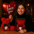 ✨DUŻY MIŚ Z RÓŻ XL 25 cm + BALON + KARTKA + PUDEŁKO – Zestaw 4w1 od MTA✨