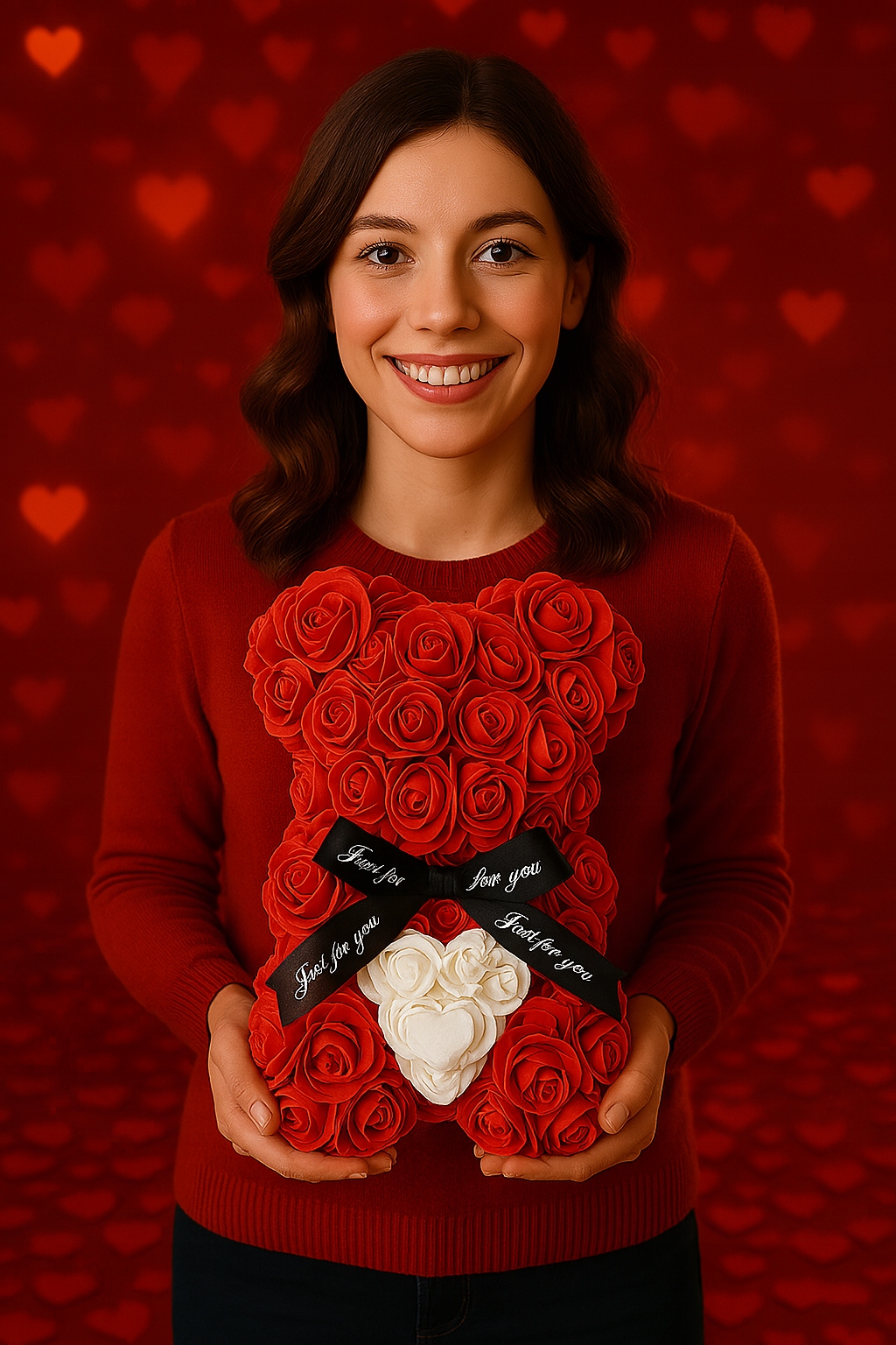 ✅ Miś wykonany z trwałych, estetycznych sztucznych róż