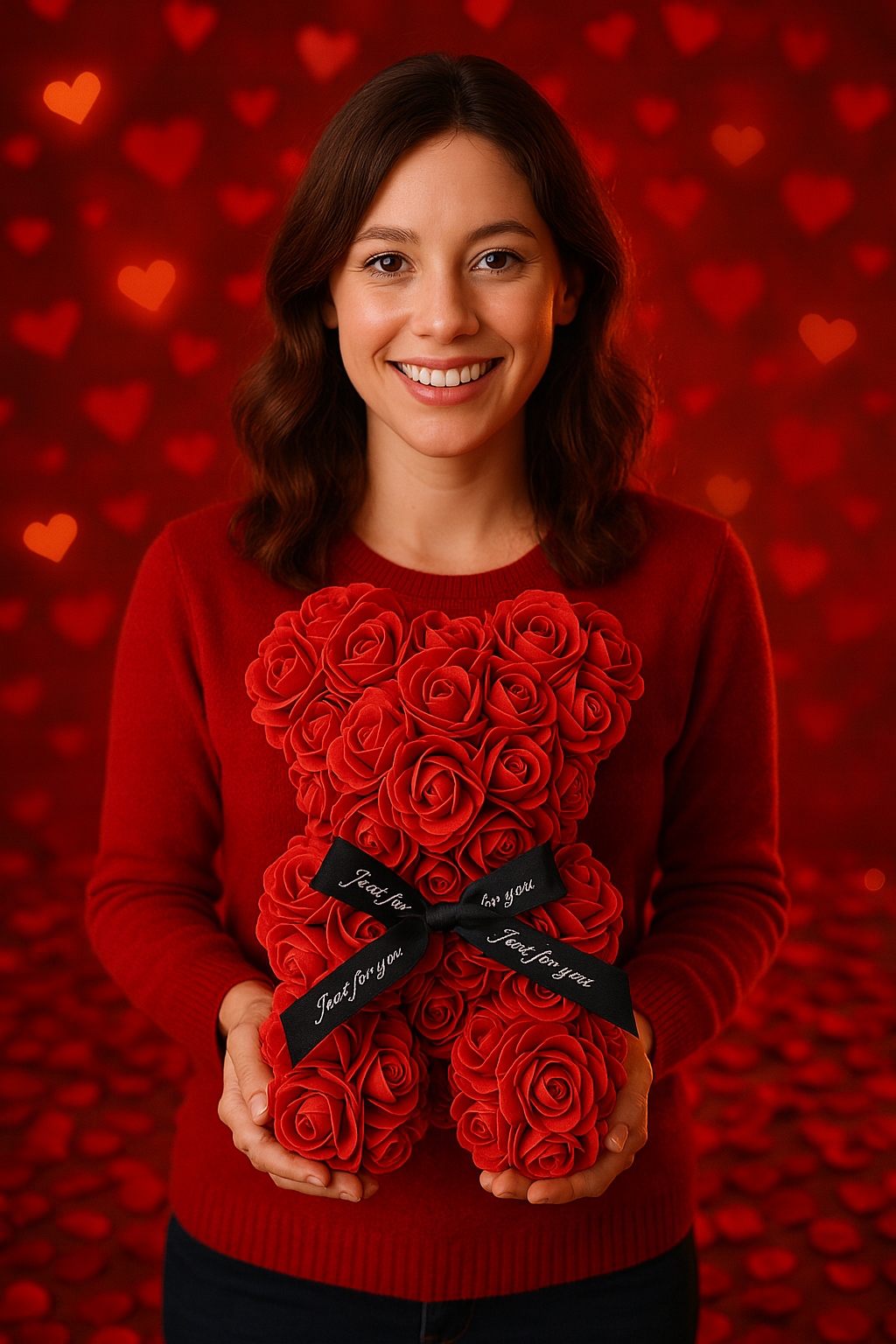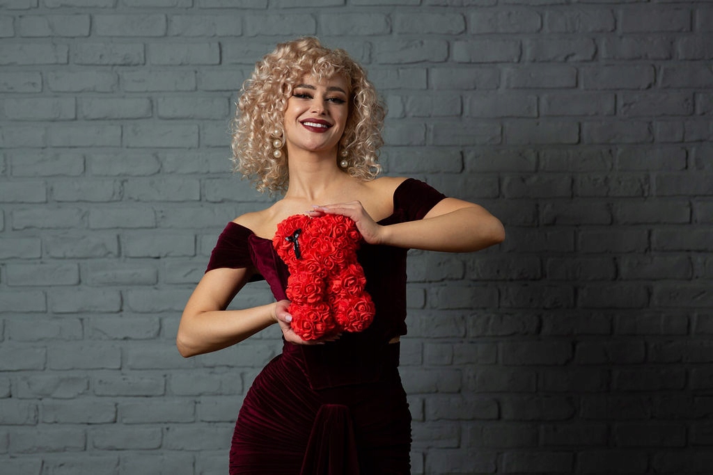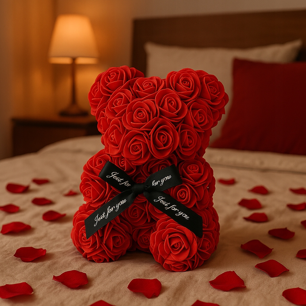 ✅ Miś wykonany z trwałych, estetycznych sztucznych róż