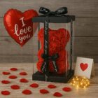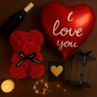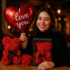 ✨DUŻY MIŚ Z RÓŻ XL 25 cm + BALON + KARTKA + PUDEŁKO – Zestaw 4w1 od MTA✨
