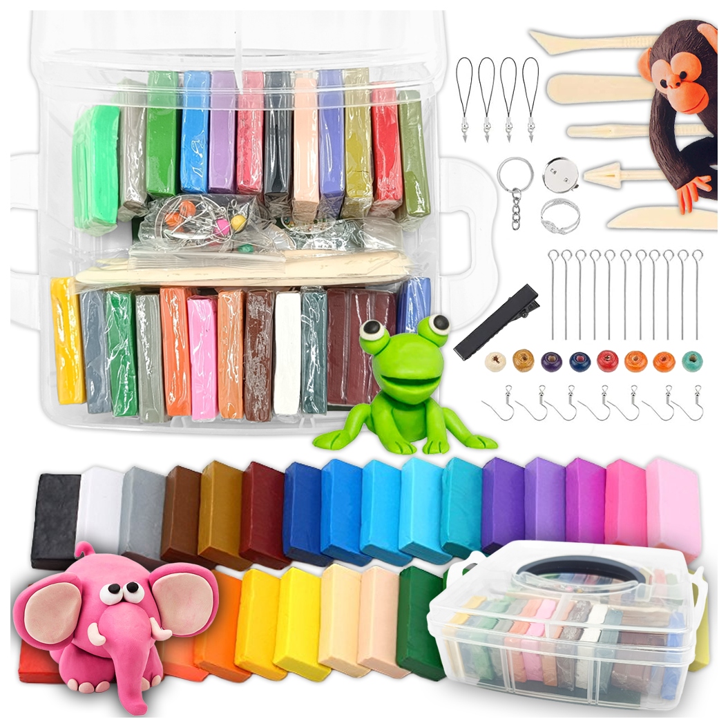➡️ 26 kolorowych glinek po 20g każda ➡️ 6 łopatek modelujących w różnych kształtach ➡️ Plastikowe etui do przechowywania ➡️ Dodatkowe akcesoria aby zabawa była jeszcze lepsza!