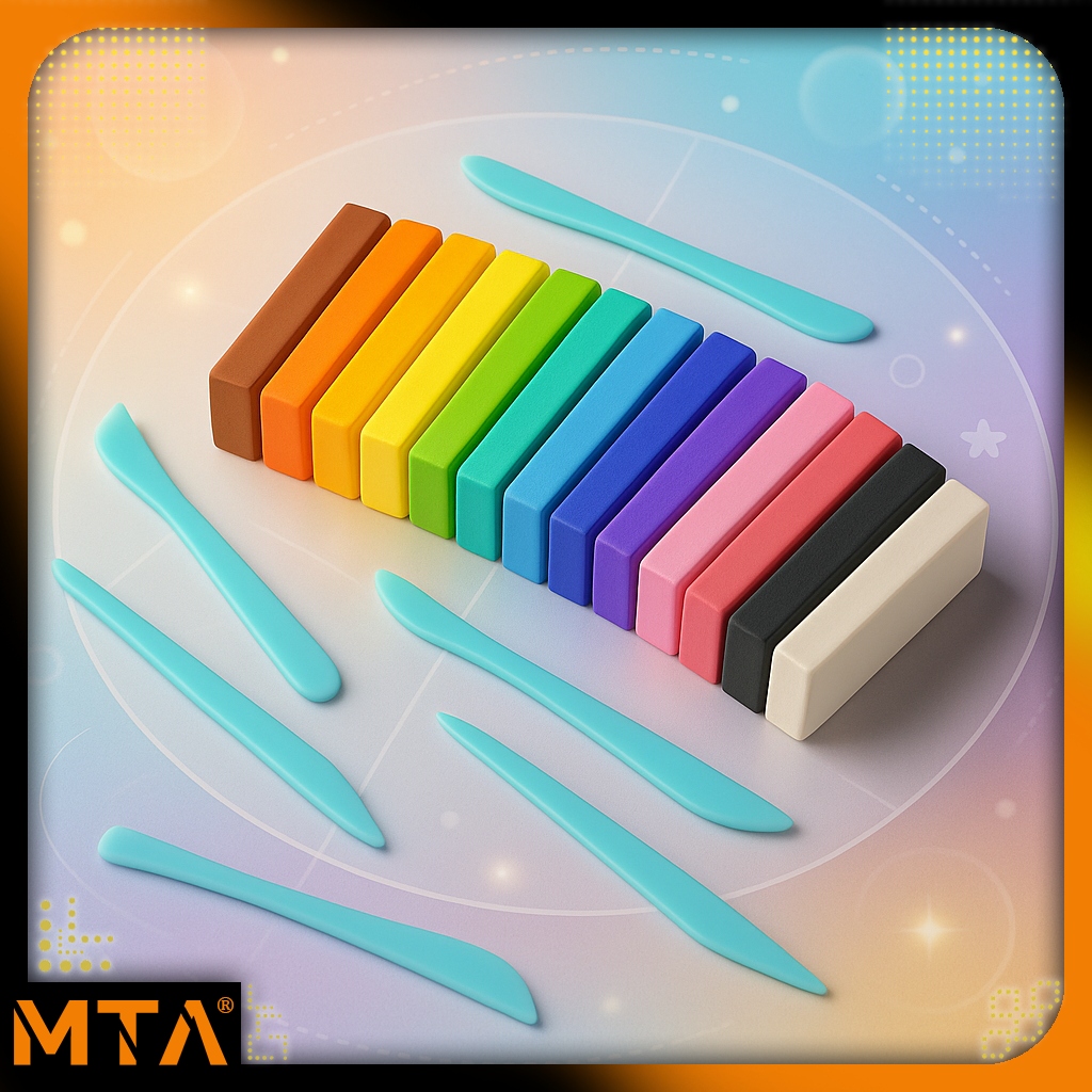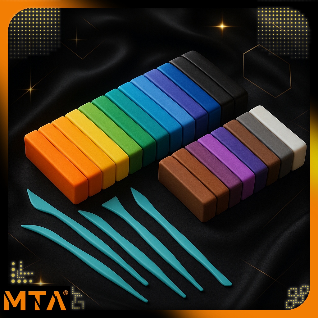 ➡️ Zestaw zawiera 26 sztuk glinki po 20g każda ➡️ Rodzaj glinki: termoutwardzalna polimerowa, idealna do pieczenia ➡️ Czas wypieku: 15–30 minut w 110–130°C, zależnie od grubości pracy ➡️ W zestawie także 6 łopatek do precyzyjnego modelowania ➡️ W zestawie dodatkowe akcesoria GRATIS