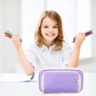 Nowoczesny fioletowy kolor przyciąga wzrok i świetnie wpisuje się w aktualne trendy. Piórnik otwiera się na płasko (nawet do 180°), co znacznie ułatwia dostęp do zawartości. Dno także można rozsunąć – to praktyczne rozwiązanie, gdy zależy Ci na szybkim dostępie do notatek lub większych akcesoriów.