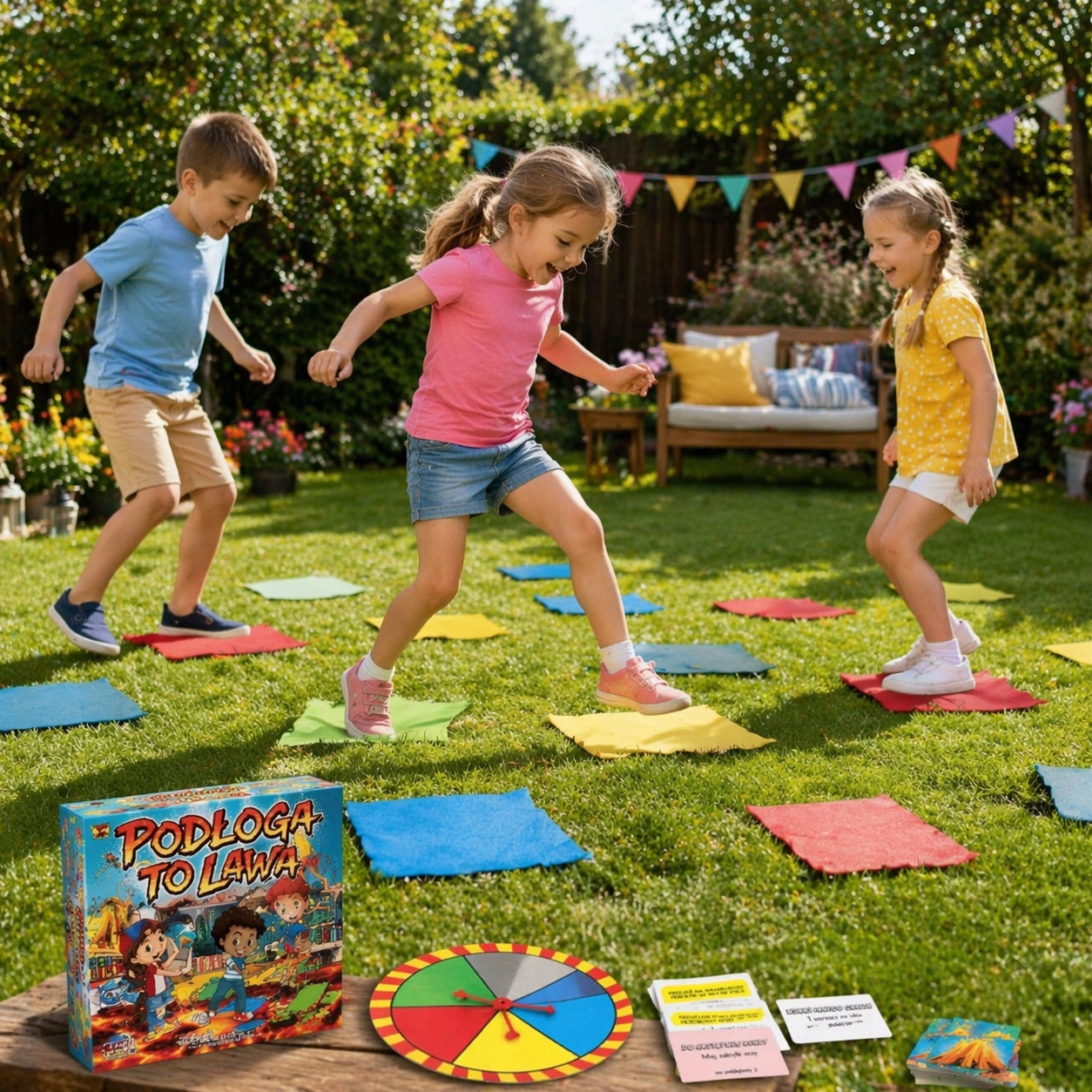 ✨Gra Podłogowa „Podłoga to Lawa” - Kolorowe Pola z Kołem Losującym✨