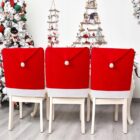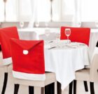 Czapki Mikołaja na krzesła to genialny pomysł na dekorację stołu w czasie świąt