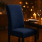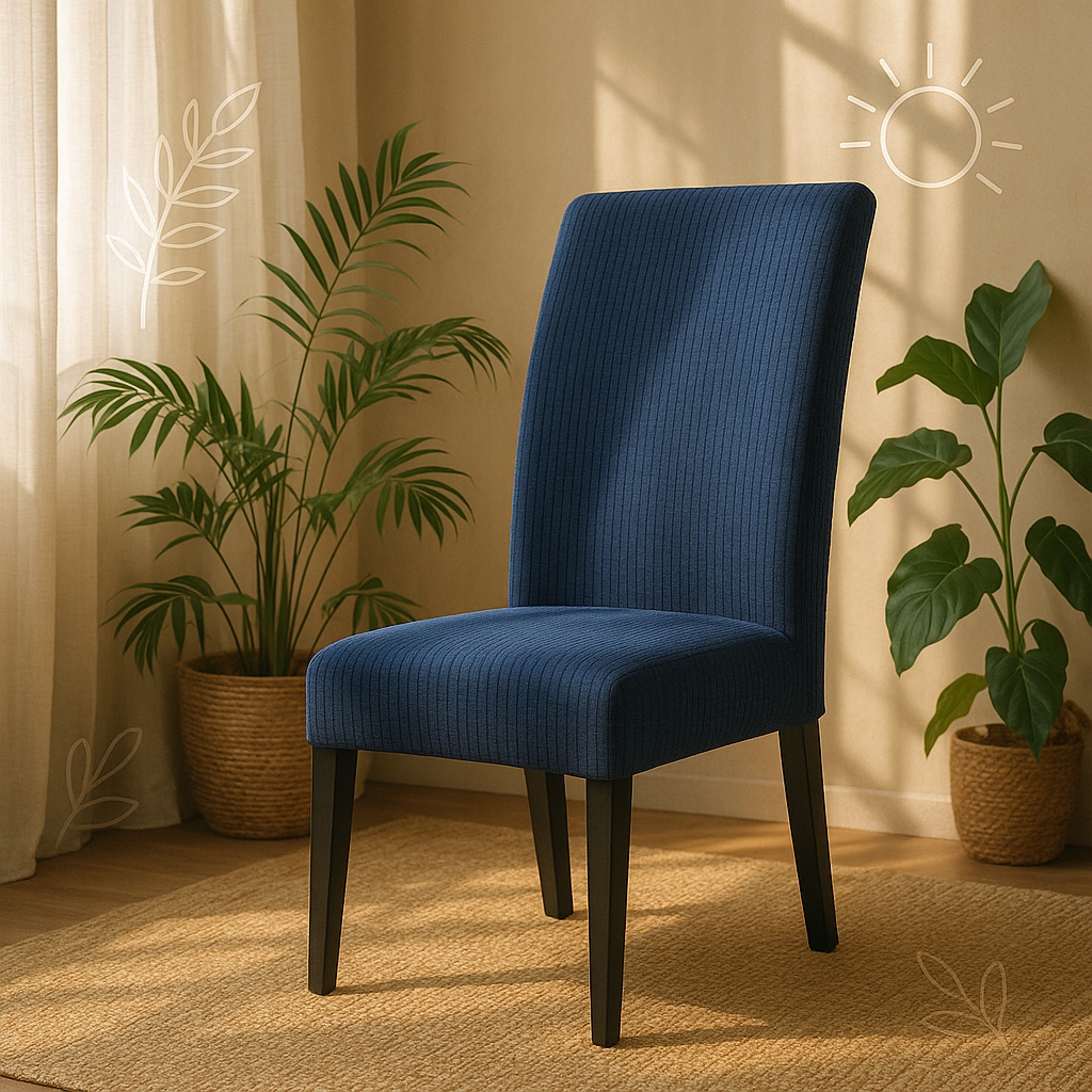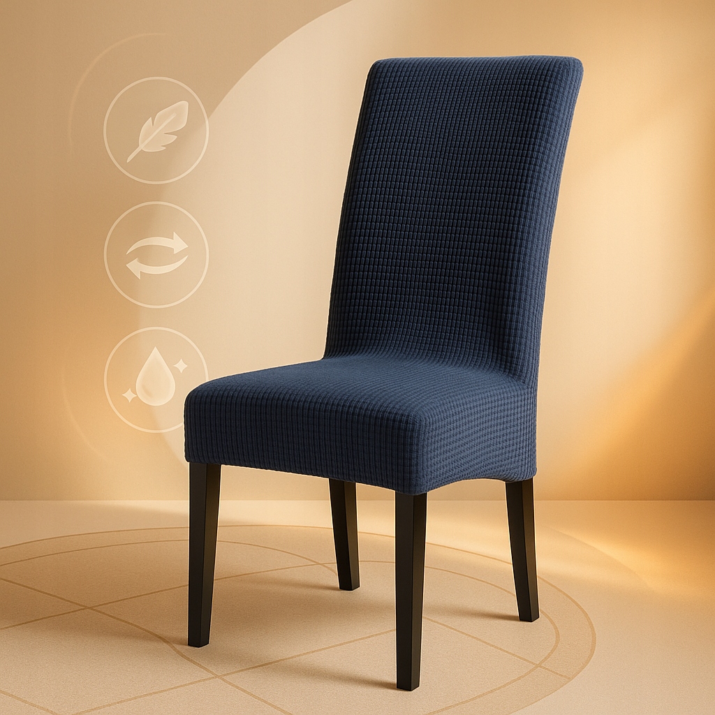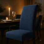 ✅Pokrowiec w eleganckim granatowym odcieniu nada krzesłom nowoczesnego charakteru i pozwoli na szybką metamorfozę wnętrza bez kosztownego remontu. Dzięki niemu z łatwością zakryjesz niedoskonałości tapicerki lub zmienisz styl pomieszczenia na bardziej spójny i estetyczny. Pokrowiec jest idealny do kuchni, jadalni, salonu czy biura, zapewniając czysty i schludny wygląd mebli. To doskonała alternatywa dla wymiany całego krzesła – tania, szybka i skuteczna. Jego delikatna struktura materiału sprawia, że prezentuje się nowocześnie i elegancko.