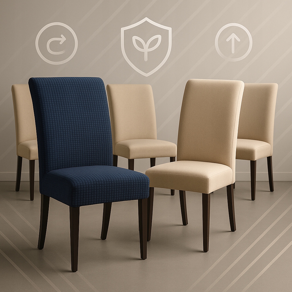 Pokrowiec zakłada się na krzesło szybko i bezproblemowo – wystarczy go naciągnąć, aby dopasował się do kształtu mebla.✅Poniżej przedstawiamy krótką instrukcję obsługi pokrowca na krzesło: