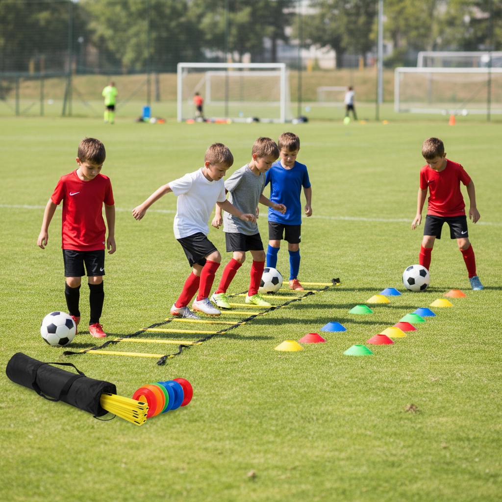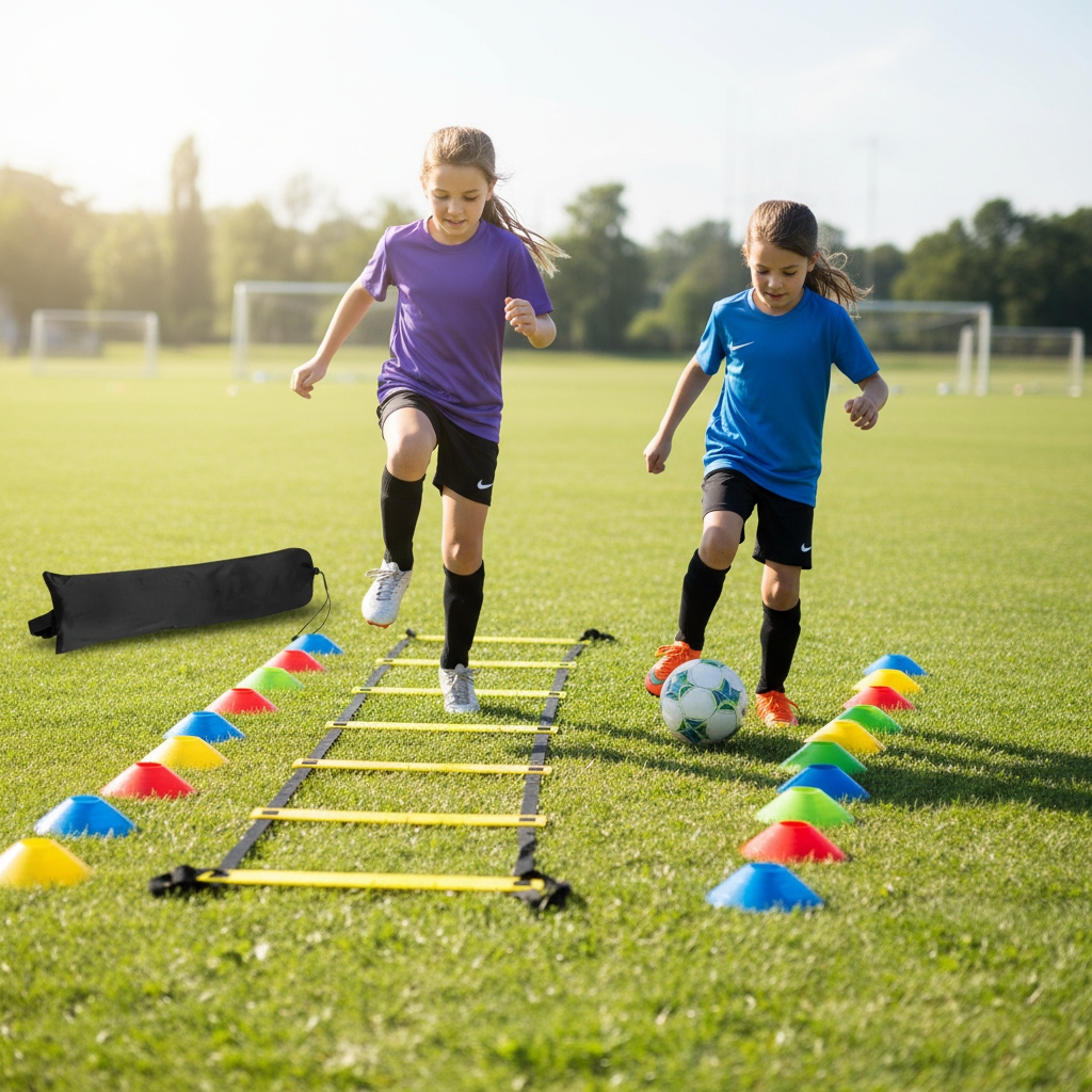 ✅Ten kompleksowy zestaw treningowy został stworzony z myślą o osobach, które chcą poprawić swoją kondycję, szybkość i koordynację ruchową w efektywny sposób. Produkt łączy w sobie funkcjonalność, mobilność oraz szerokie zastosowanie, dzięki czemu sprawdzi się zarówno na boisku, jak i w domu. To idealne rozwiązanie dla każdego, kto chce trenować świadomie i osiągać lepsze wyniki sportowe.