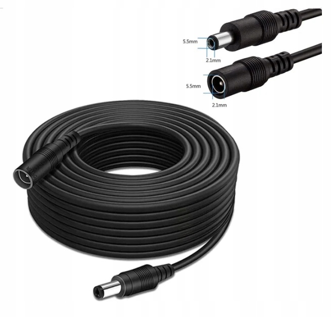 PRZEDŁUŻACZ 5m ZASILANIA KABEL ZASILAJĄCY DO KAMER I LAMP PRZEWÓD DC 5,5mm