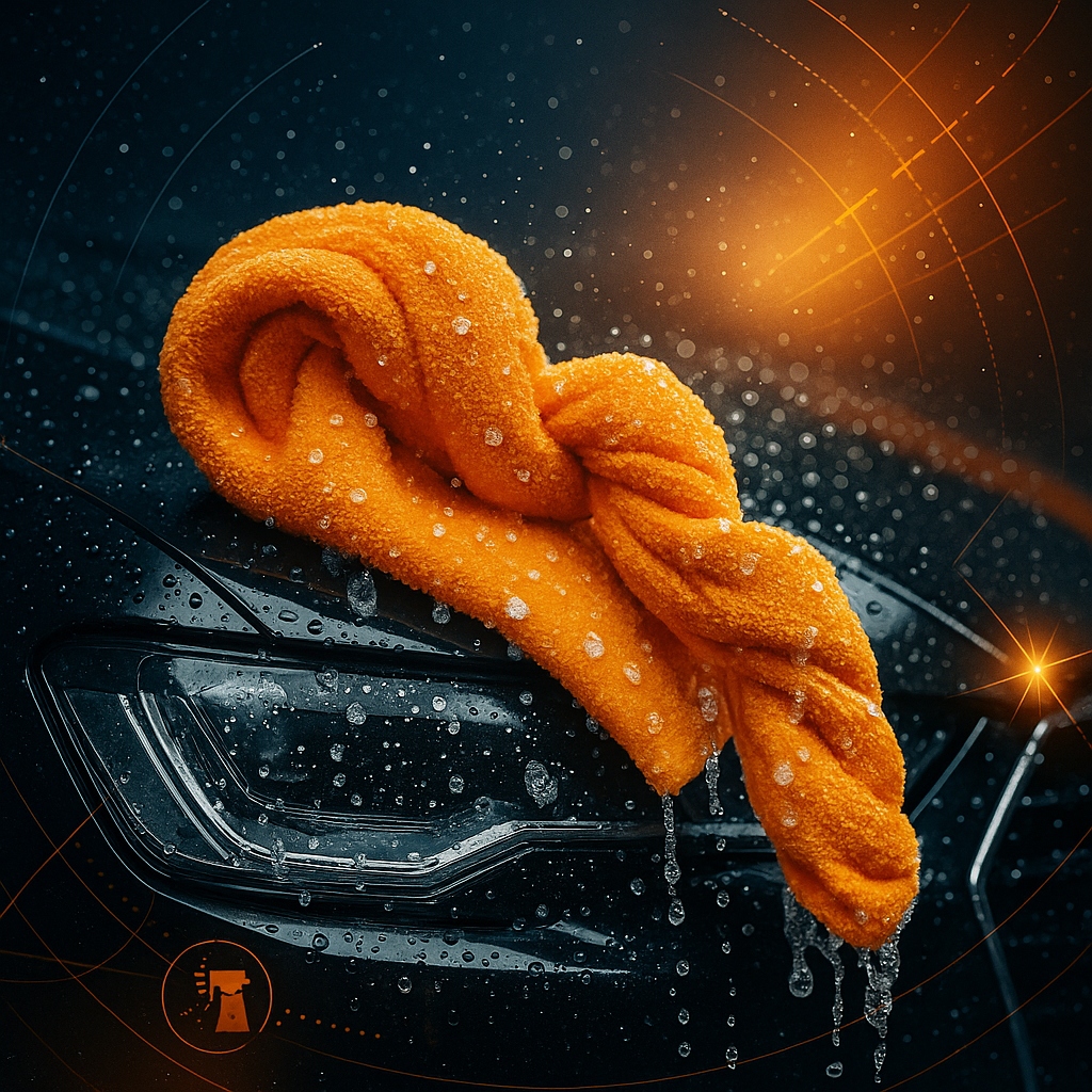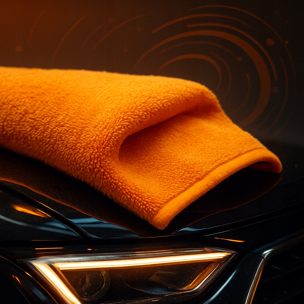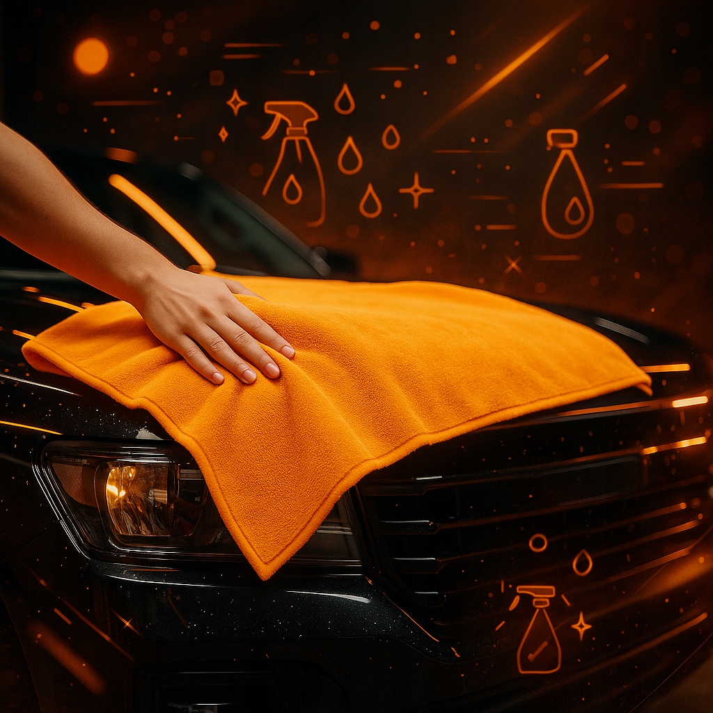 ➡️ Skład: delikatna, skręcana mikrofibra – bezpieczna dla lakieru i szkła.