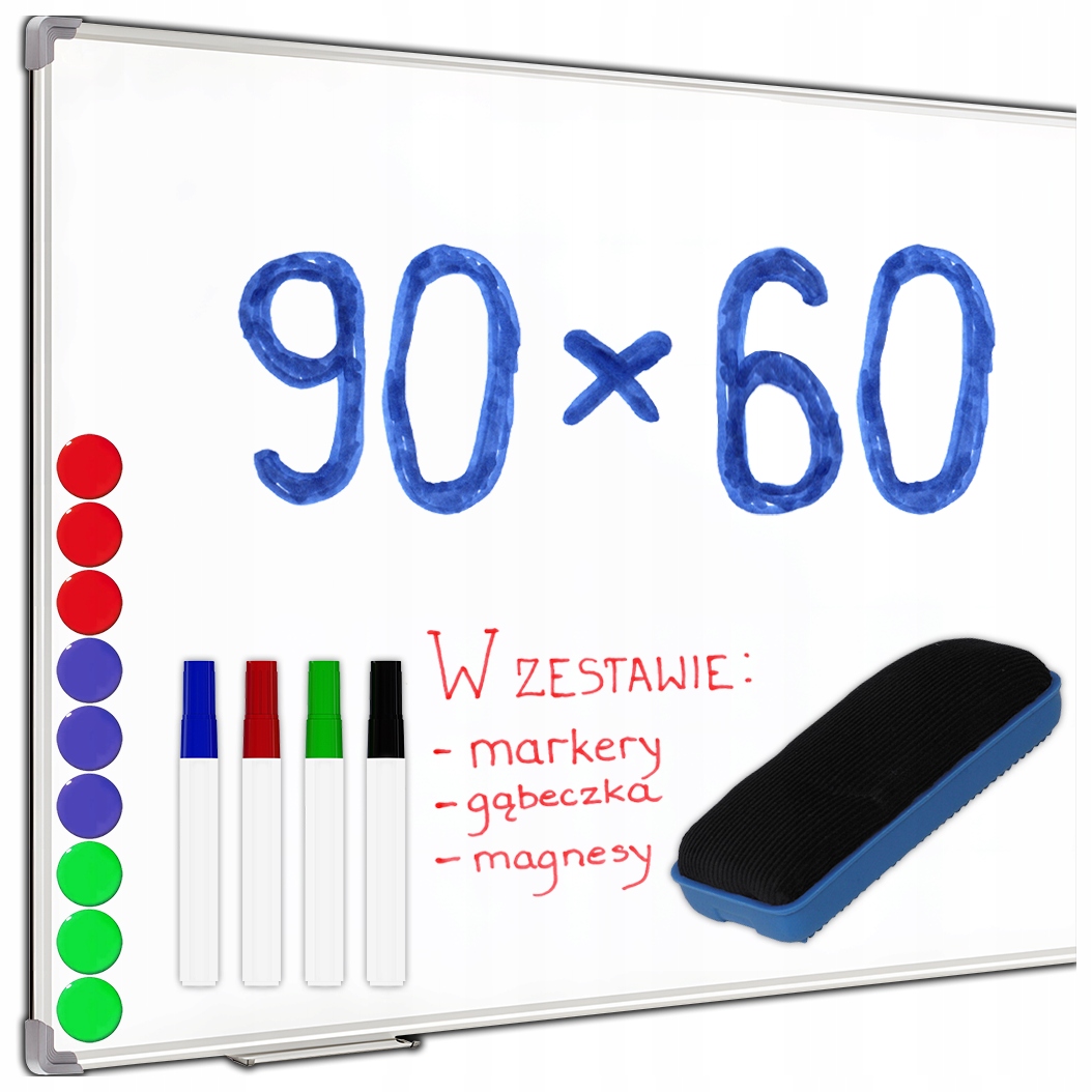 Tablica suchościeralna magnetyczna 90×60 biała na ścianę pisanie + GRATISY