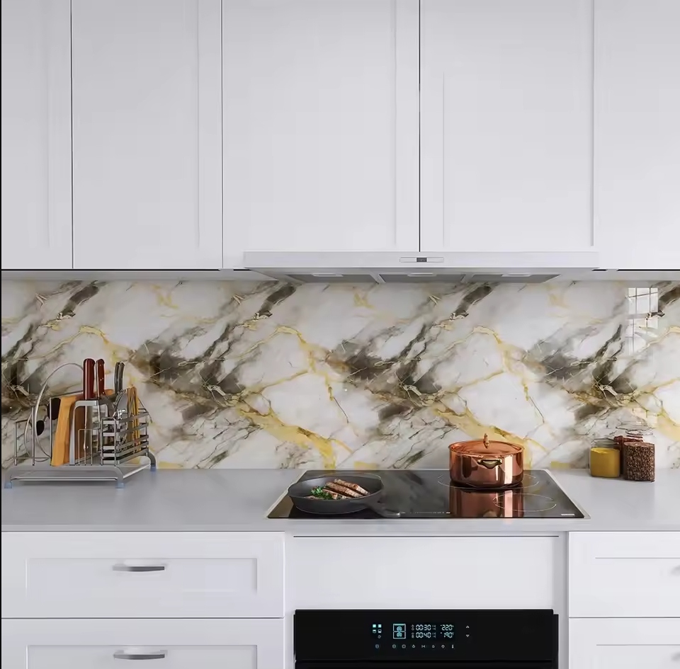 Tapeta została precyzyjnie zaprojektowana, by naśladować wygląd tradycyjnego marmuru, nadając pomieszczeniu subtelny, lecz wyrazisty akcent.