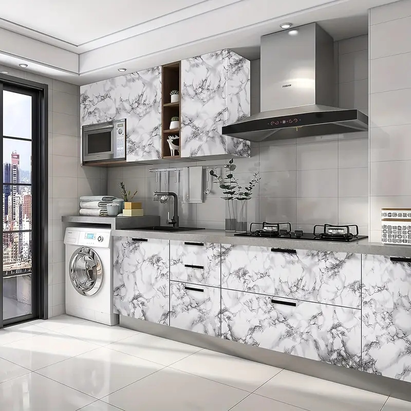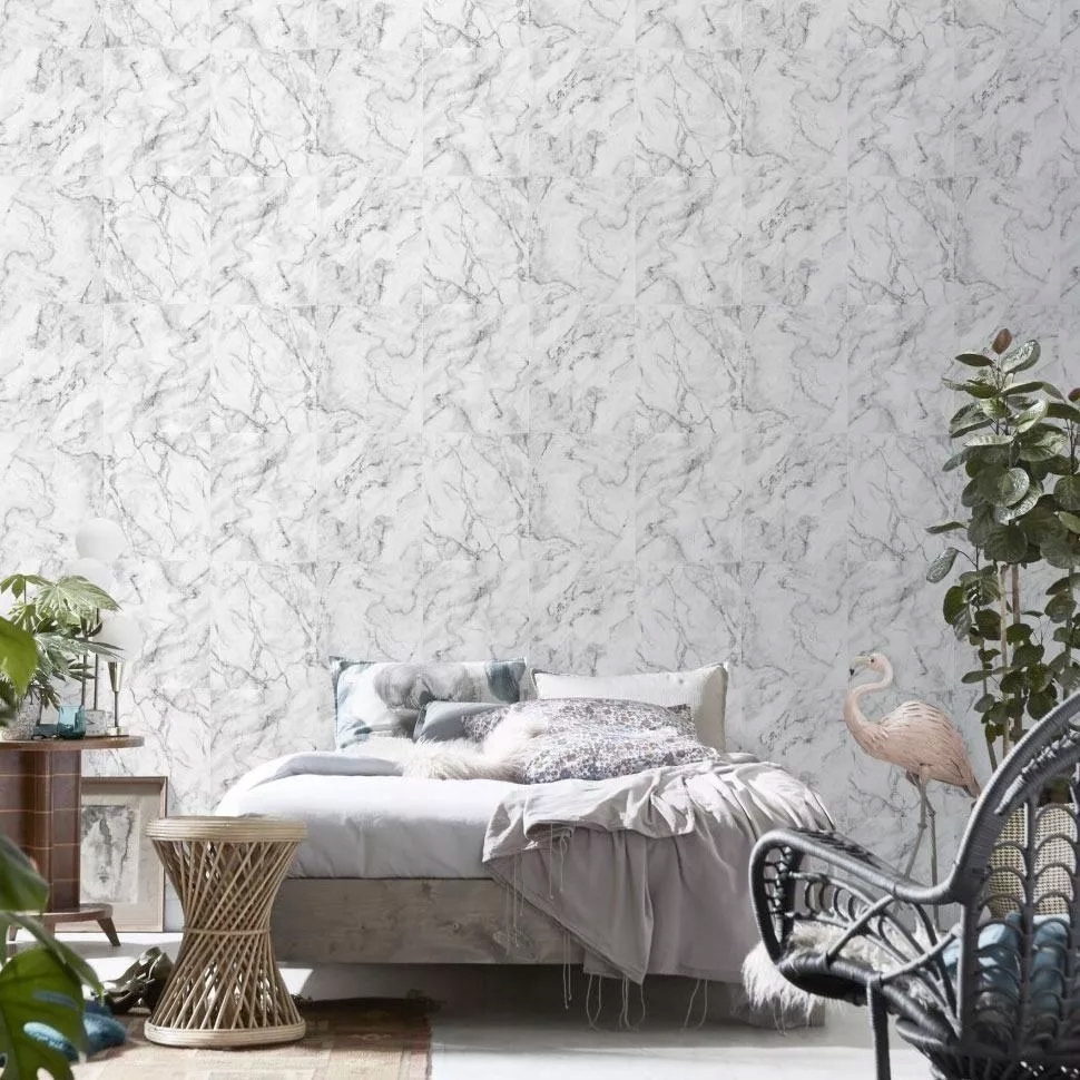 Tapeta została precyzyjnie zaprojektowana, by naśladować wygląd tradycyjnego marmuru, nadając pomieszczeniu subtelny, lecz wyrazisty akcent.