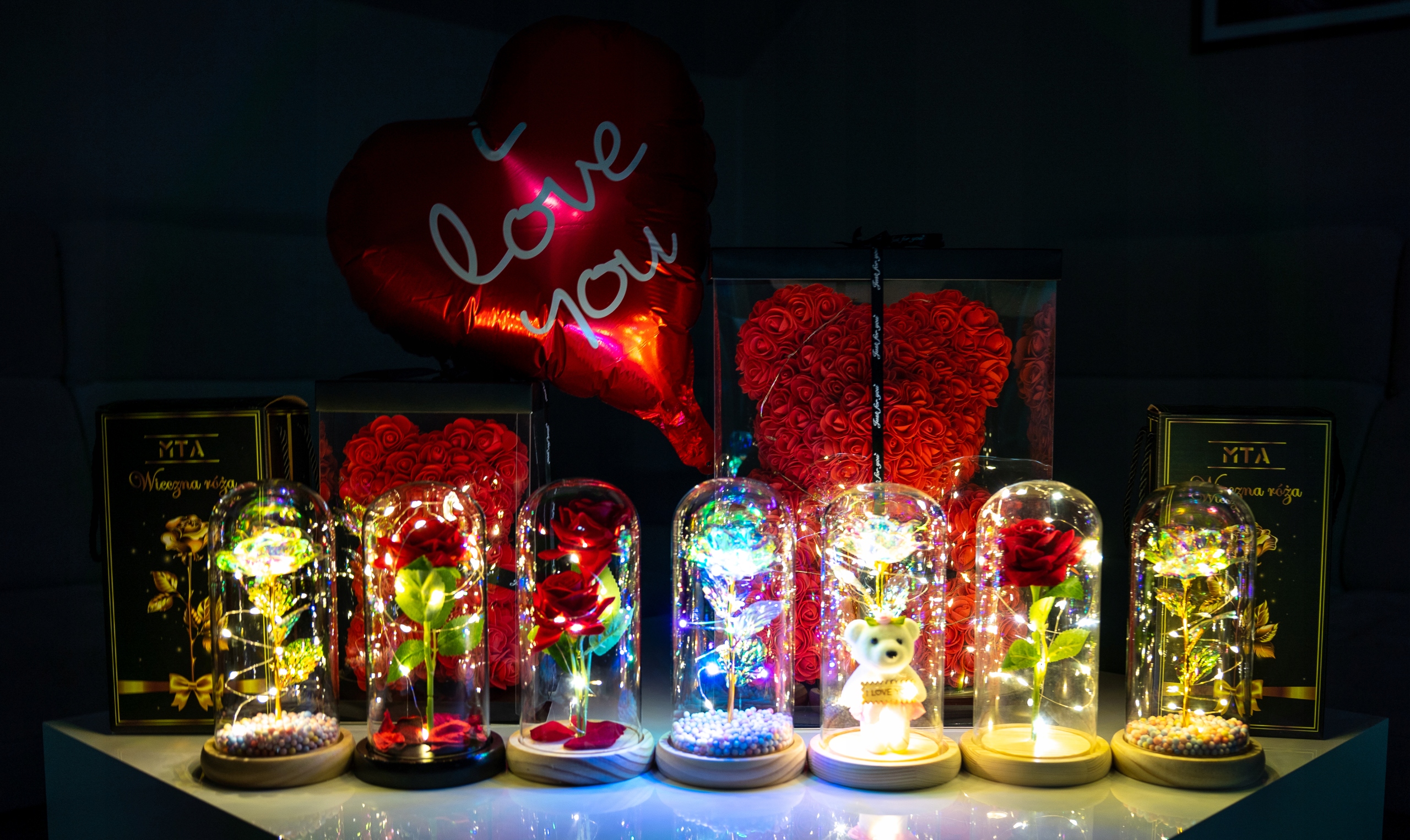 Wieczna róża w szkle LED Prezent Urodziny Rocznica Dzień Nauczyciela BALON
