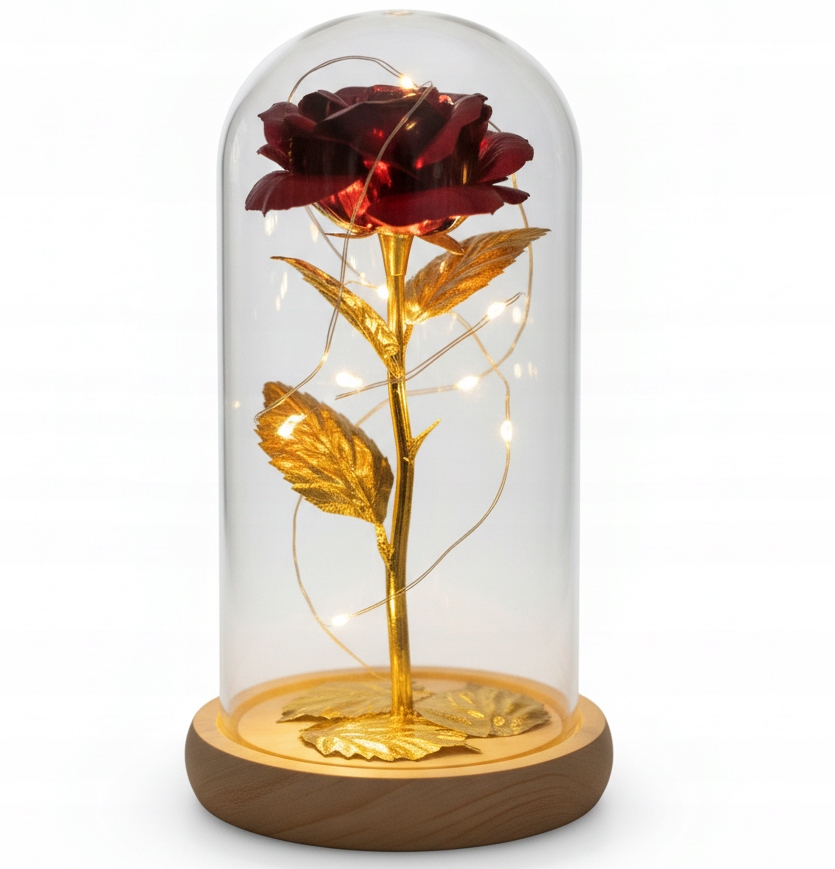 WIECZNA RÓŻA W SZKLE LED ŚWIECĄCA NA BATERIE PREZENT DLA KOBIET