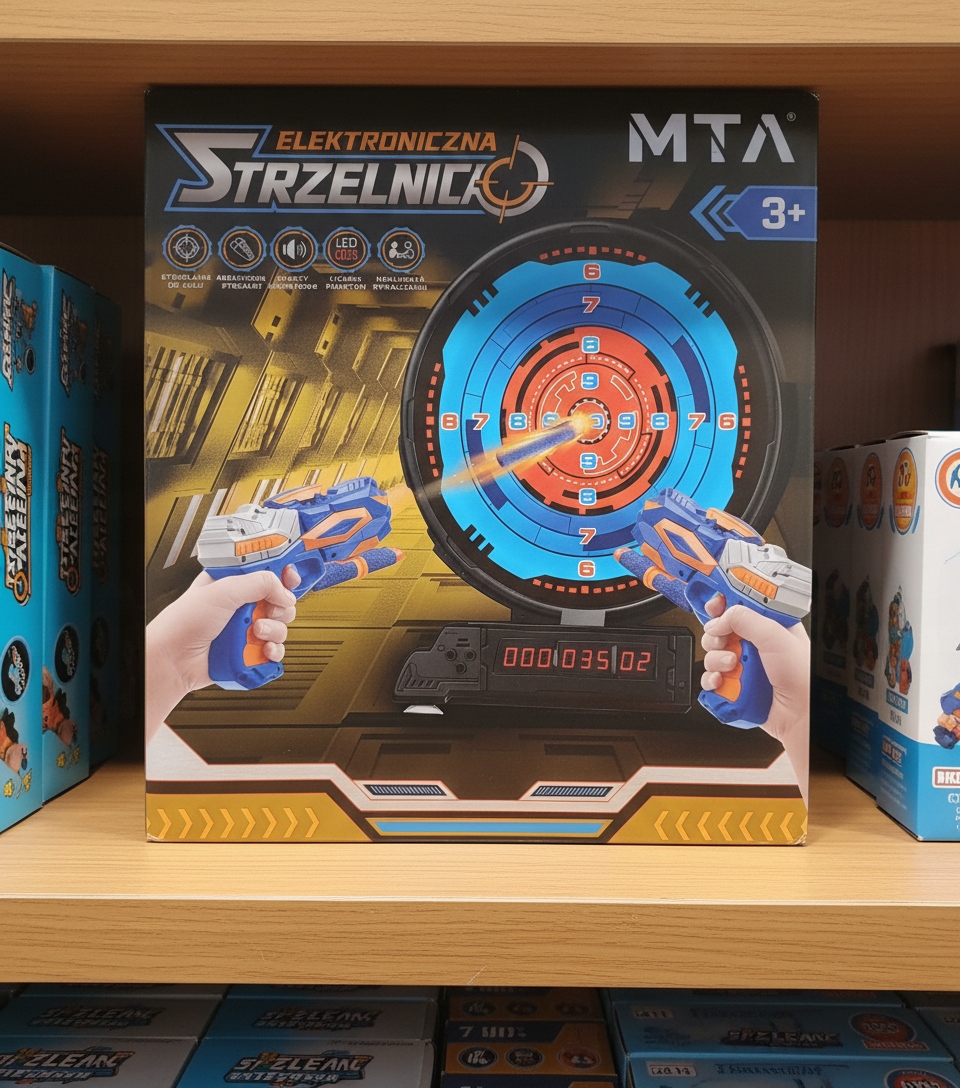ZABAWKOWA TARCZA ELEKTRONICZNA POLSKA DO GRY STRZELNICA DO CELU PISTOLETY