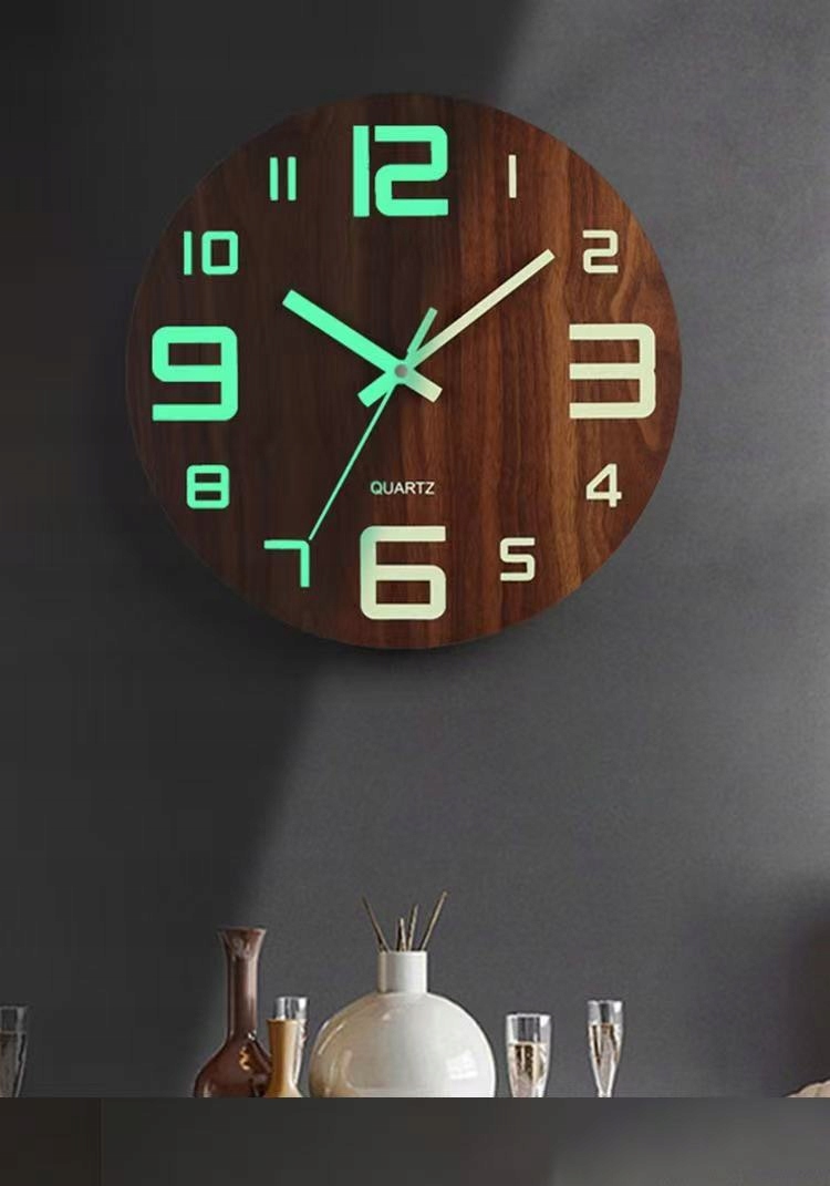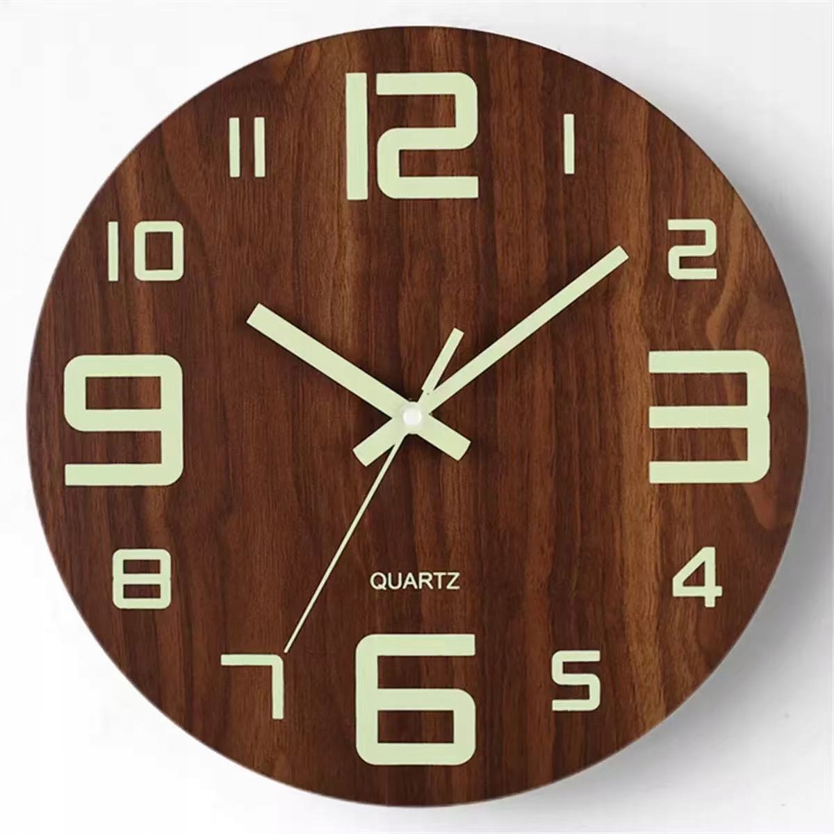 Zegar Ścienny Świecący w ciemności Drewniany Okrągły Ciche Kwarc LOFT 30CM
