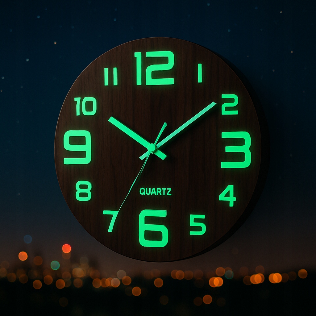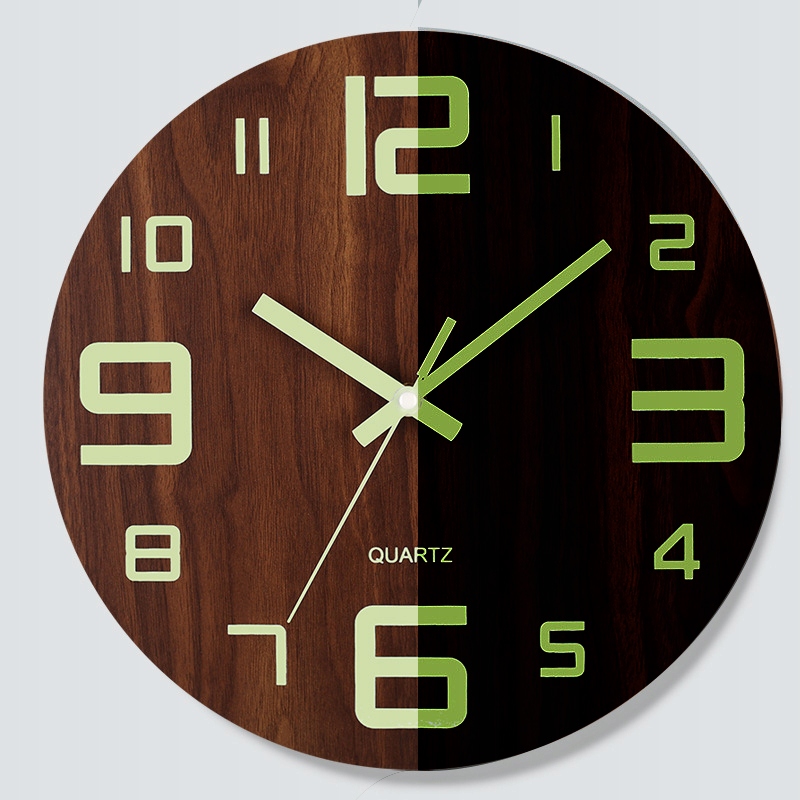 ✅Zegar wyposażono w funkcję fluorescencyjną, która umożliwia widoczność w nocy bez dodatkowego zasilania. Wystarczy, że zegar zostanie wystawiony na światło słoneczne lub sztuczne w ciągu dnia – wtedy jego cyfry i wskazówki pochłoną energię. W ciemności emitują delikatne zielone światło, ułatwiając odczyt godziny. To praktyczne i estetyczne rozwiązanie do każdej przestrzeni – zarówno nowoczesnej, jak i klasycznej.