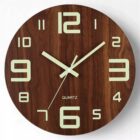 Zegar Ścienny Świecący w ciemności Drewniany Okrągły Ciche Kwarc LOFT 30CM