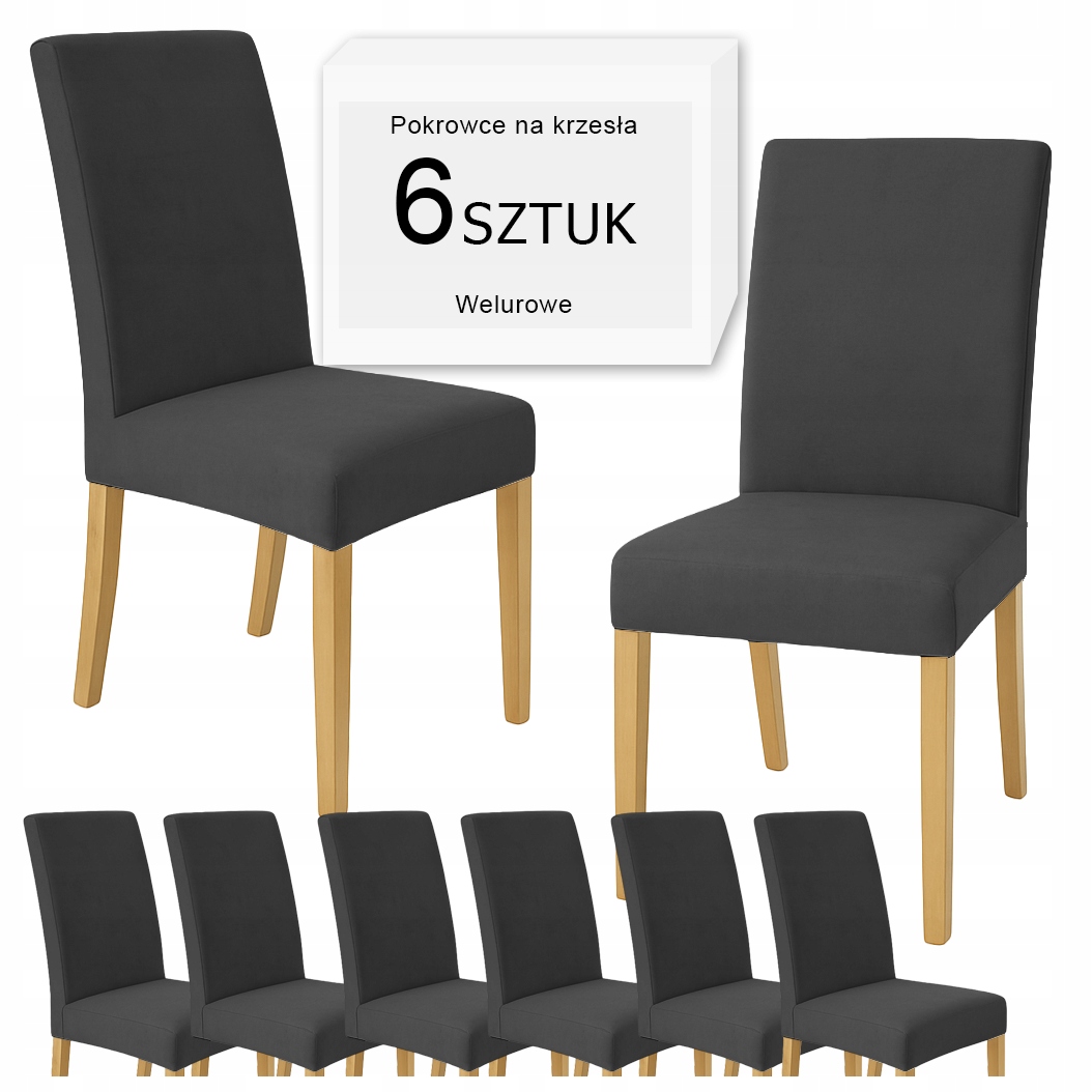 ZESTAW 6 SZT POKROWIEC NA KRZESŁO CIEMNO SZARY WELUR ELASTYCZNY GRUBY POKROWCE
