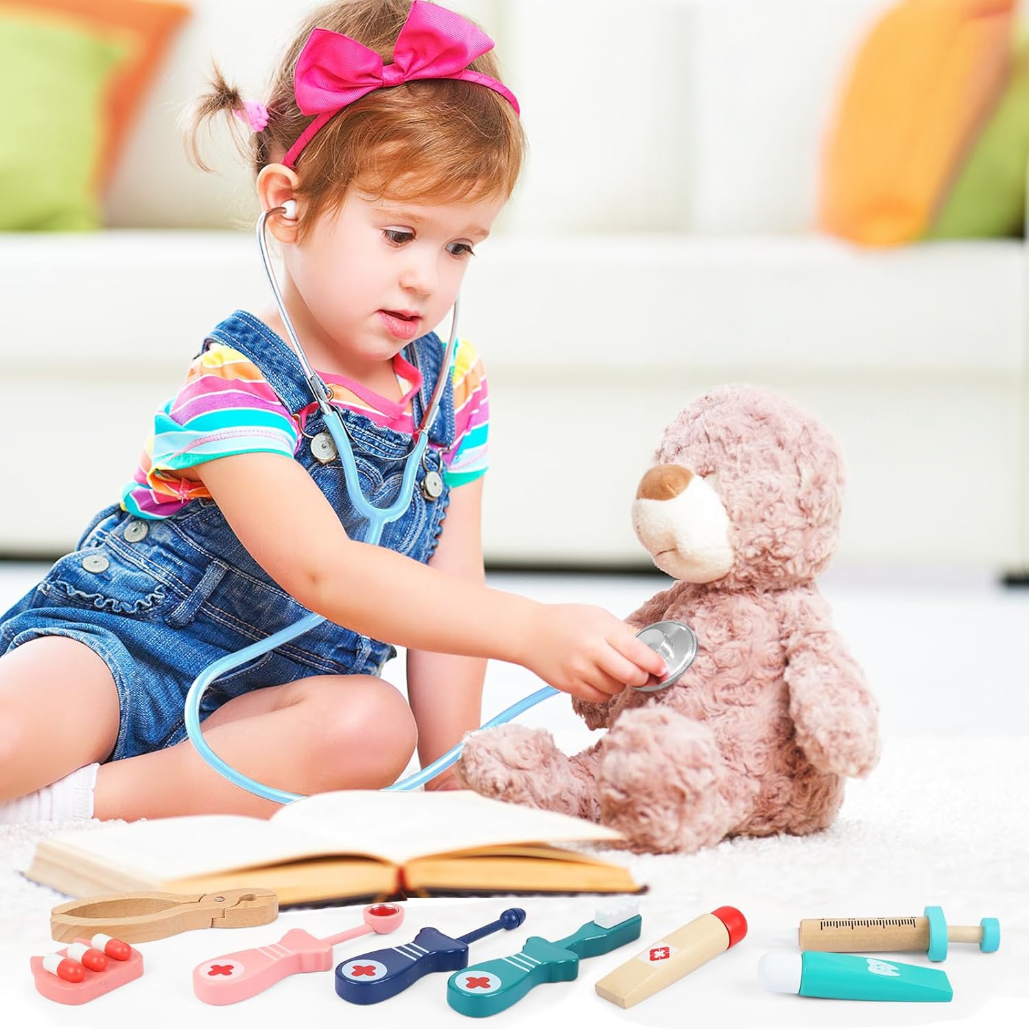 ✅Zestaw rozwija motorykę małą, koordynację, wyobraźnię, empatię oraz umiejętności społeczne. Pomaga również w oswajaniu dziecka z tematyką zdrowia i leczenia, co może pozytywnie wpłynąć na jego późniejsze doświadczenia z lekarzami.