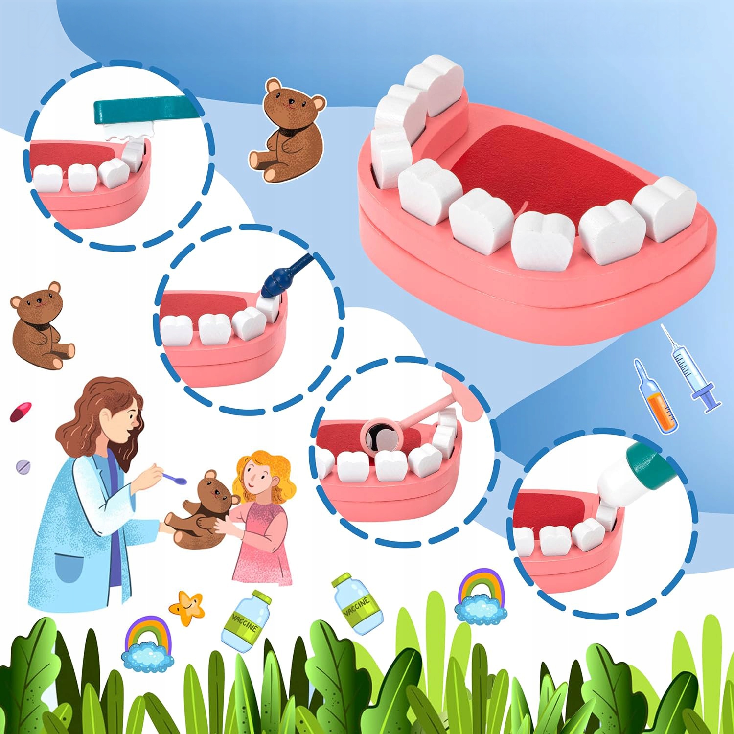 ✅Zestaw Małego Dentysty to połączenie świetnej zabawy z nauką i oswajaniem trudnych tematów. Wszystkie akcesoria zostały wykonane z gładkiego drewna, które jest bezpieczne dla małych rączek i przyjemne w dotyku. Maluchy mogą ćwiczyć odgrywanie ról, rozwijać kreatywność oraz uczyć się, jak wygląda praca stomatologa. Zabawa z zestawem pomaga również zredukować lęk przed prawdziwymi wizytami w gabinecie. To świetny sposób na wspólne spędzanie czasu i rozmowy o zdrowiu.